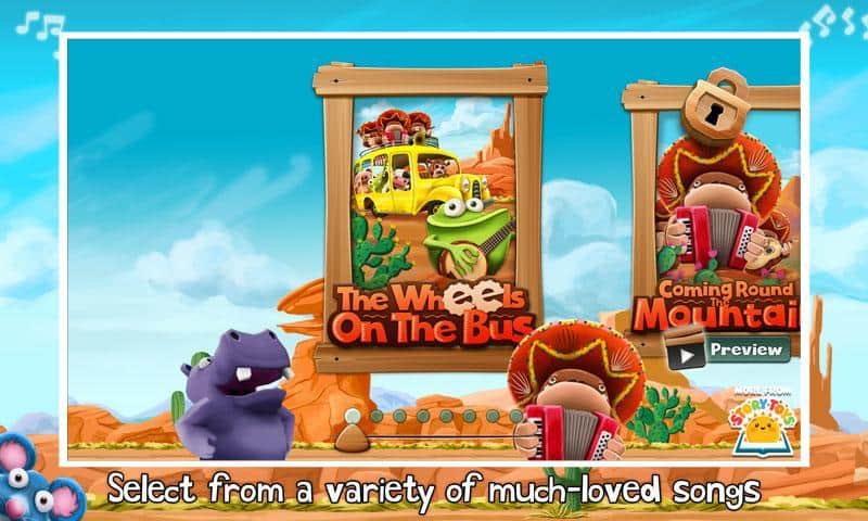 Любимые мелодии такие как: Колеса на автобусе, Старый Макдональд, Twinkle Twinkle Little Star, Itsy Крохотный Паук и многое другое