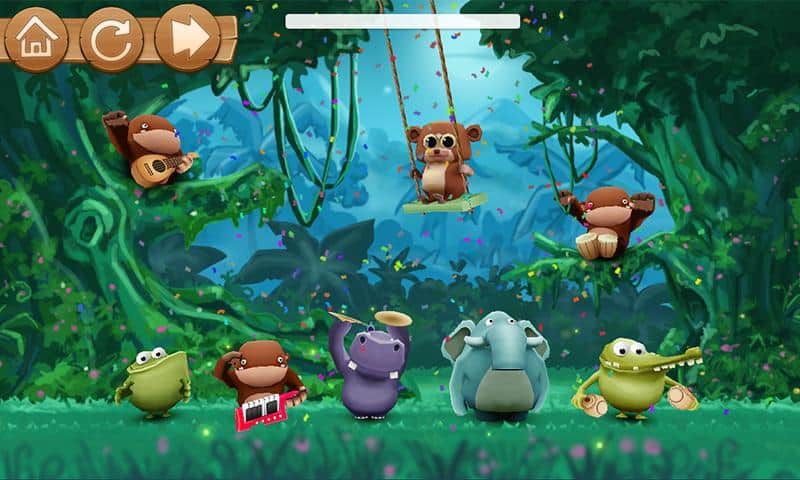 Animal Band Free 3D Music Toy – эта увлекательная музыкальная игра для детей и их родителей. С помощью этой игры ваш ребенок научиться создавать мелодии и любить музыку. В этой игре он будет управлять различными животными, которых в этой игре более 15 разнообразных видов, и каждый из них обладает своим инструментом. Наши животные долго путешествовали и пели и хотят отдохнуть, но как только ребенок коснётся их пальцем, они начнут играть и петь заново. Веселая игра, которая непременно понравиться вашему ребенку, где он сможет услышать свои любимые песни.