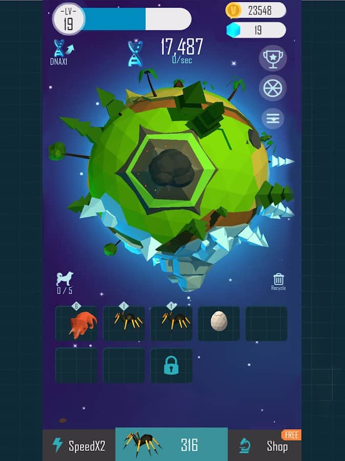 Animal Planet: Evolution - увлекательная аркадная игра с элементами кликкера и стратегии в которой вам предстоит взять под свое управление развитие Земли с древнейших времен и по шагам проследить эволюцию таких существ как мамонт, динозавр и других животных. Кроме этого вам необходимо развивать и другие элементы планеты, при этом необходимо следить за гармоничным сочетанием, что позволит вам привести эволюцию к вершине. Приятная графика и простой геймплей с широкими возможностями позволят вам в полной мере реализовать свой потенциал.