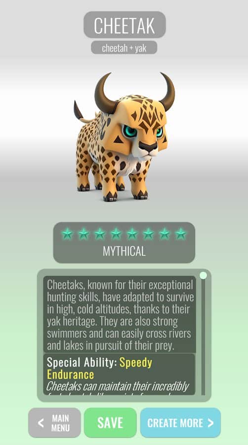 Animash - Добро пожаловать в увлекательный мир генетического слияния животных и не только! Продвинутый алгоритм предлагает вам широкий выбор комбинаций, чтобы создать уникальных гибридов. Вам нужно только выбрать двух животных, и алгоритм сделает все остальное за вас! Для того, чтобы начать ваше экспериментирование, выберите два животных, чьи характеристики и способности вам интересны. Можете соединить разные внешние признаки или объединить характеристики, которые вы считаете наиболее уникальными. Ваше воображение ваш единственный ограничитель!