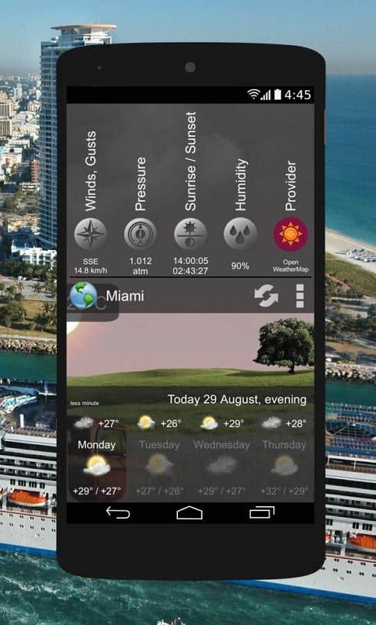 Animated Weather Widget&Clock – скачайте прикольный виджет погоды и часов для андроид, от разработчика Mobilityflow Publishing, с реальными эффектами погодных условий за окном (дождь, снег, облачность и проч.). Виджет покажет погоду в более 50 тыс. городах мира и предоставит детальный прогноз на весь день (утро, день, вечер, ночь). Есть возможность просмотра прогноза погоды на 4+ дней вперед.