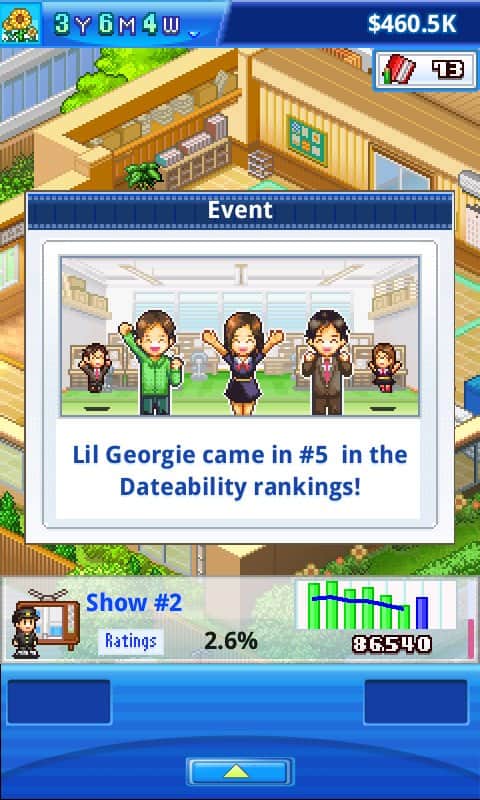 Anime Studio Story - симулятор на андроид, в котором вы будете владеть своим ток шоу. В этой игре вашей задачей будет из обычных людей, пришедших к вам с улицы, сделать знаменитостей и звезд популярный ток шоу. Выберите себе подходящего персонажа, оденьте его в подходящие костюмы и сделайте его мега популярным и известным, чтобы он смог повысить рейтинги вашего ток шоу. Вы единственный человек в этой студии, который сможет повысить все показатели вашей студии и принести ей популярность, так что беритесь за дело и раскручивайте новых звезд. С каждым новым уровнем расширяйте свои владения и увеличивайте рабочие места.