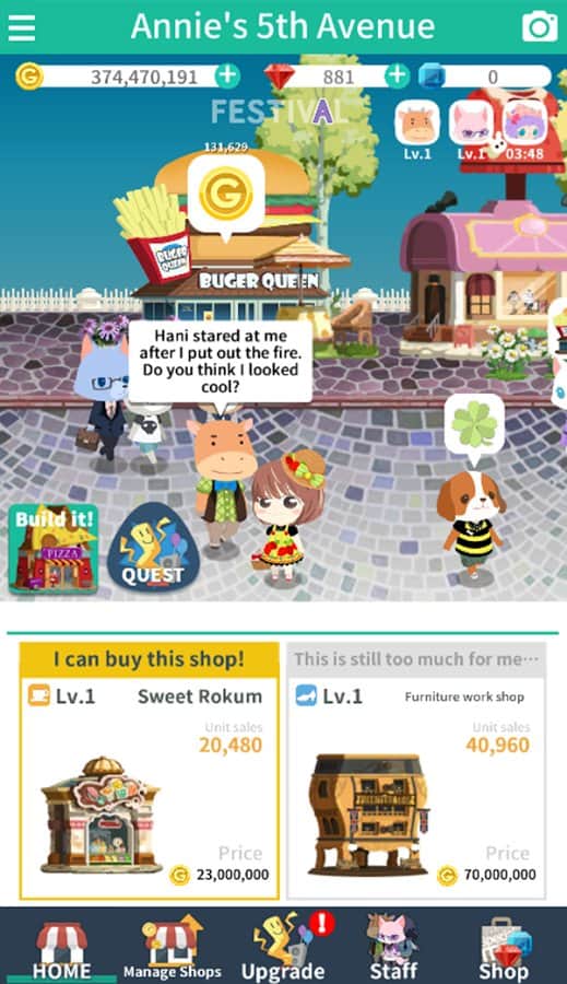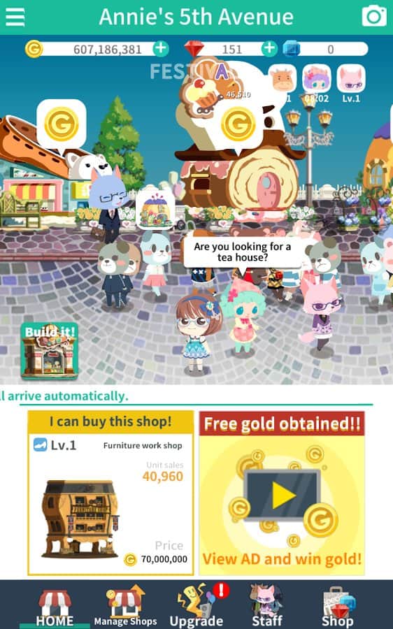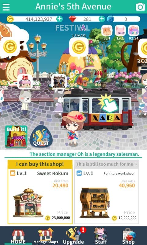 Annie's 5th Avenue – кликер на андроид, где вы будете помогать Энни строить магазины, торговые центры и кафе. Проверьте на деле скорость ваших пальцев и как можно чаще нажимайте на экран своего девайса, чтобы помочь Энни заработать как можно больше денег для строительства. Прогуливайтесь по центральной улице, состоящей из магазинов и кафе, и выполняйте поставленные миссии по ловле грабителей. Создавайте на заработанные деньги сеть магазинов модной одежды или кафе или модернизируйте уже имеющиеся. Привлекайте покупателей яркими вывесками и на заработанные деньги расширяйте бизнес. Применяйте в игре различные улучшения и бонусы.