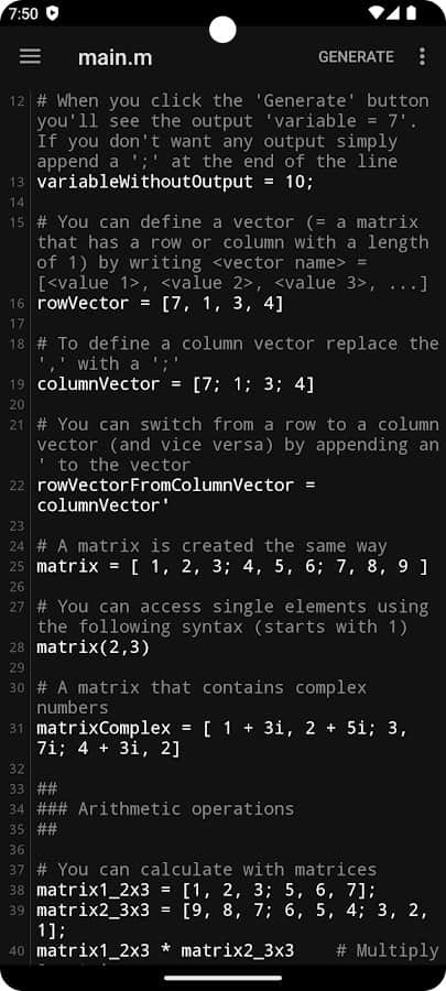 Anoc - это мощный и безопасный редактор Octave, разработанный специально для вашего устройства Android. Это приложение предоставляет вам возможность создавать и управлять проектами Octave непосредственно на вашем смартфоне или планшете, а также генерировать результаты и графики с помощью онлайн-редактора Octave Verbosus. Octave - это инструмент для численных вычислений, и Anoc предоставляет вам всю мощь этого инструмента прямо на вашем Android-устройстве. Вы можете решать линейные и нелинейные задачи, а также проводить различные численные эксперименты, используя широкие графические возможности для визуализации и манипулирования данными. Выберите режим работы - локальный или облачный - в зависимости от ваших предпочтений, и наслаждайтесь удобством генерации и просмотра результатов и графиков прямо из вашего кода Octave.