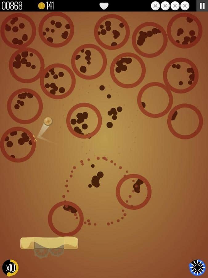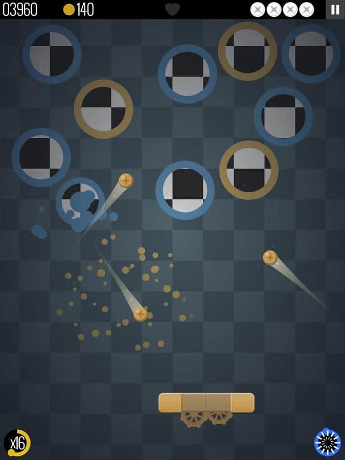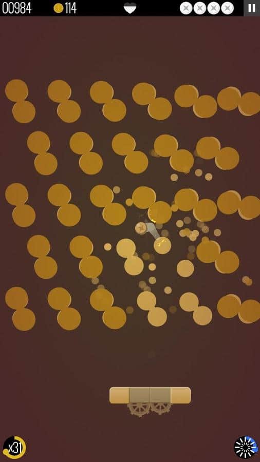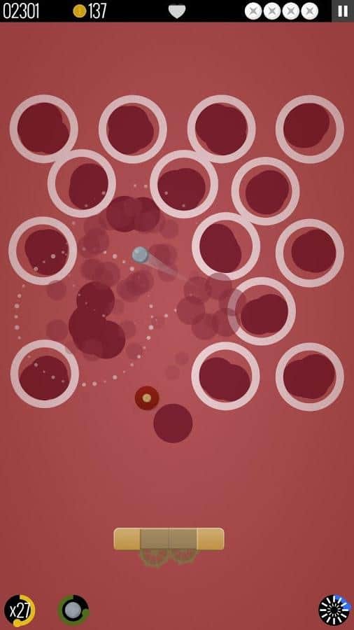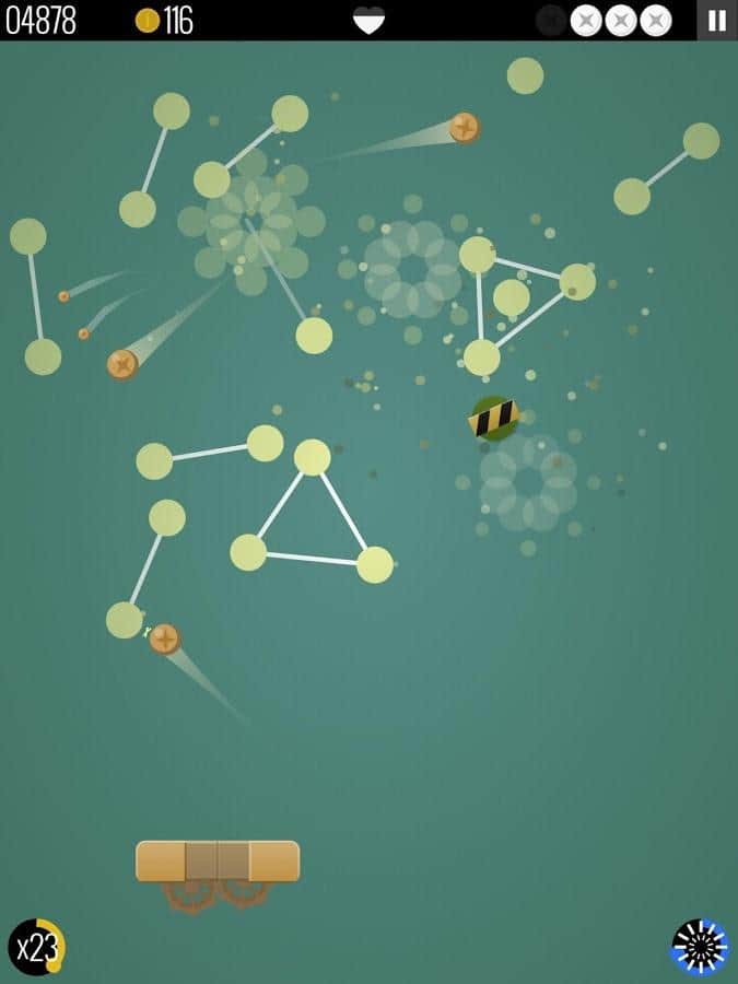 В игре реализован необычный подход к дизайну и наполнению уровней. Здесь не простые парализованные кирпичи, а динамичные геометрические фигуры, реагирующие на шар не только уменьшением хп, но и сменой положения. При смещении, фигуры влияют друг на друга и это добавляет динамичности всей игре.