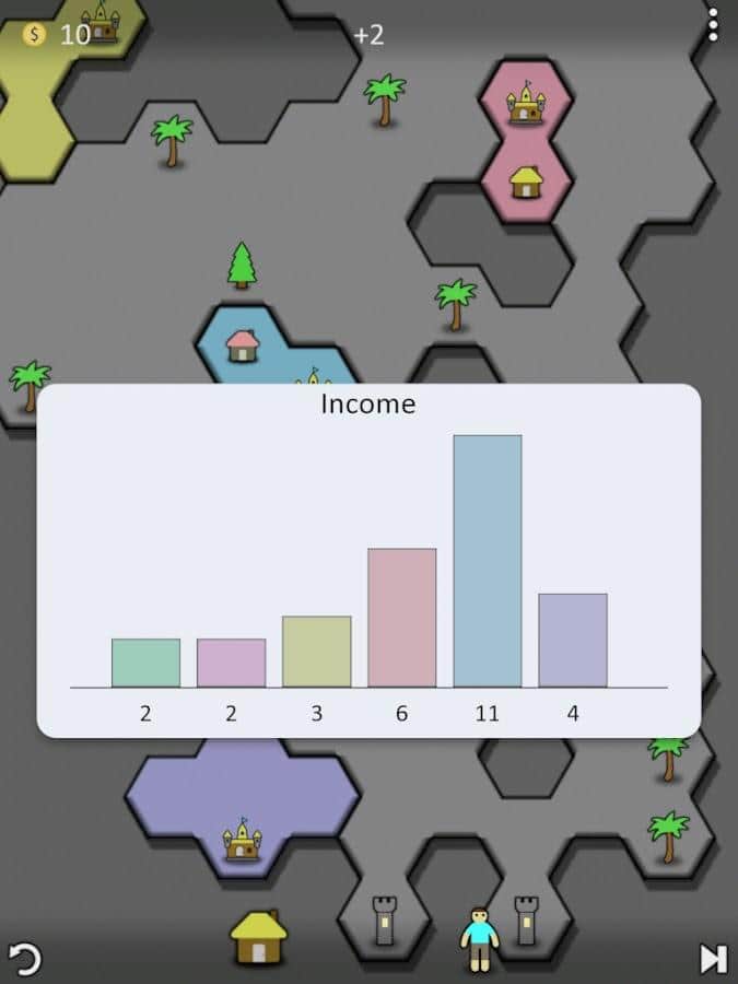 Ну а если о геемплее то звучит все просто, у вас есть участок земли с городом, каждая клетка производит 1 доход, есть улучшения в виде ферм которые прибавляют, есть юниты которые жрут часть прибыли от территории, но если их отрезать от земли они умрут с голоду так сказать, и все на этом вертится юниты захватывают земли и получают доход либо становятся уничтоженными ботами/игроками.