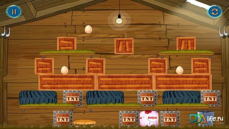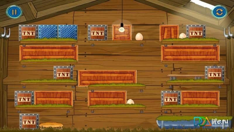 Anu Egg Oh! – головоломка ,в которой необходимо вернуть все яйца разбросанные по курятнику обратно в гнездо. Яйца могу находится на различных платформах, ящиках и других предметах. Вам необходимо рушит предметы так чтобы яйцо покатилось и попало в цель. Но не стоит забывать, что яйца очень хрупкие и если что-то пойдёт не так, то они обязательно разобьются. На начальных этапах покажется, что всё очень просто, но это не так, дальше будет сложнее и придётся хорошенько подумать.
