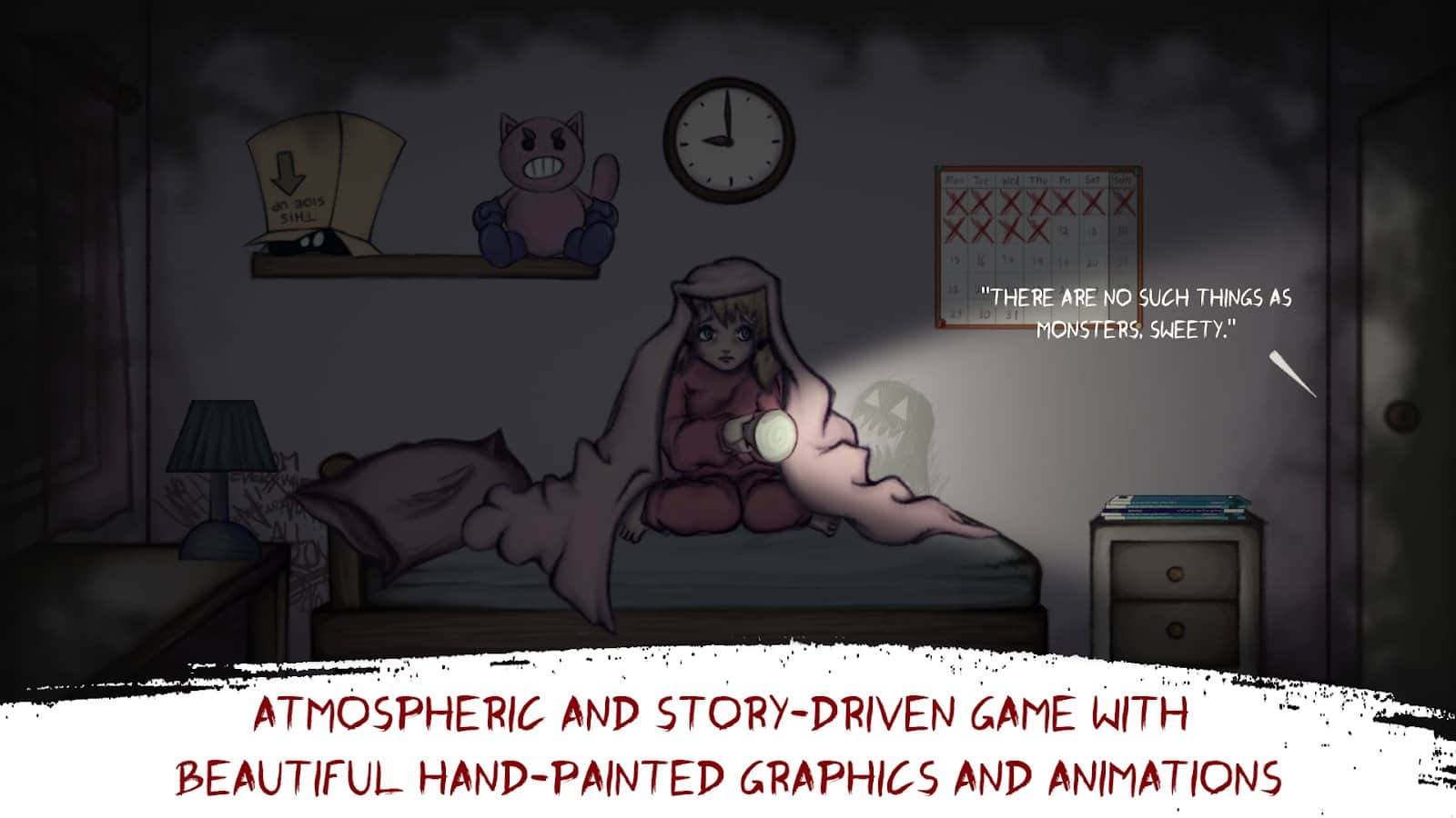 Anxiety of Alina – хоррор на андроид, где вы будете защищать Алину от чудовищ скрывающихся в темноте. Для того чтобы избавить маленькую девочку от ужасных чудовищ вам необходимо светить фонариком в их сторону чтобы отпугнуть. Будьте предельно осторожны и внимательны и не допускайте того чтобы ваши ресурсы исчерпались раньше времени. Если вы поможете Алине пережить ночь то узнаете больше об истории этой девочки. Получайте еженедельную плату и тратьте ее на покупку ресурсов, сохранение фонарика и восстановление храбрости Алины.
