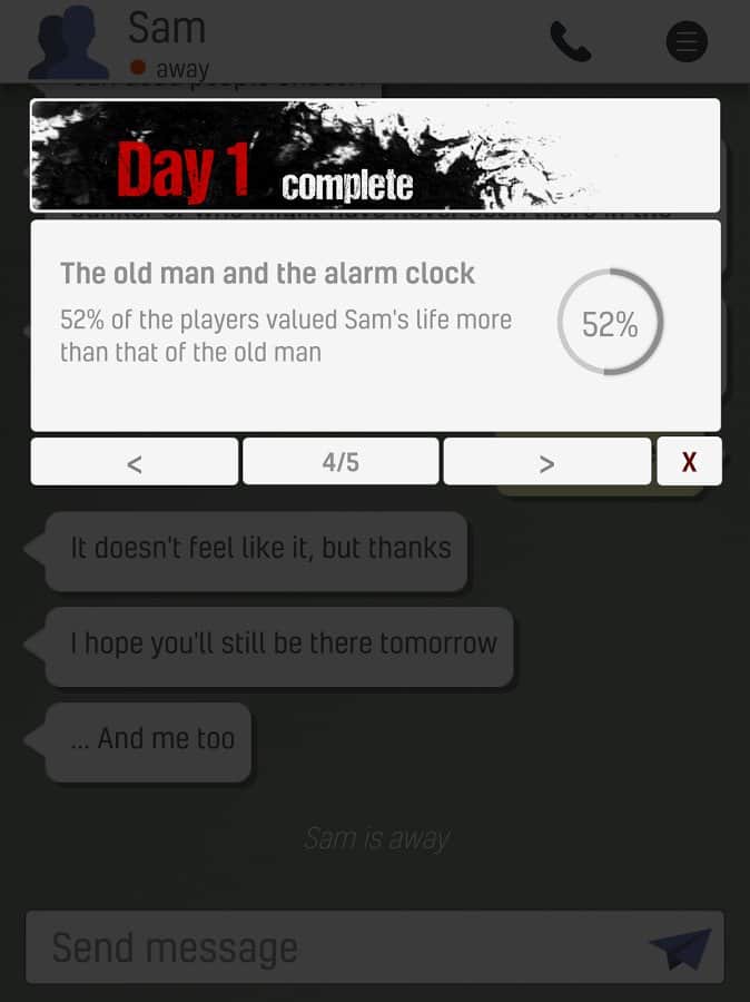Игра очень атмосферная есть разные концовки,и Сэм здох на 4 день в бункере,решил продолжить с чекпоинта а там уже титры пошли,я чуть мобилу не разбил!Сэм чтоб тебе зомби калакольчики отгрызли!