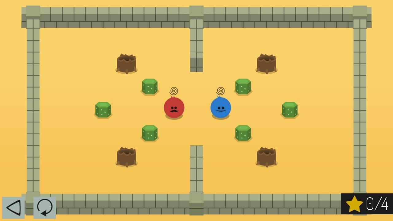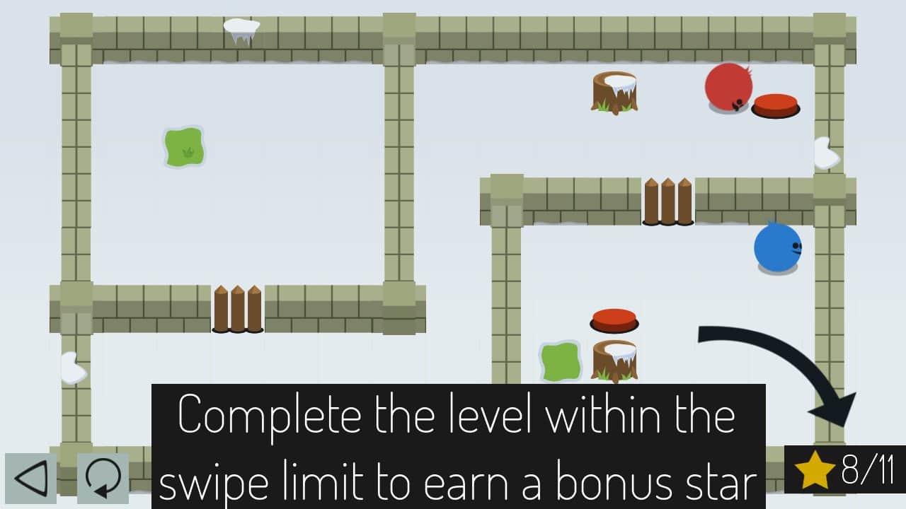 Apart - позиционная головоломка главная цель которой предельно проста, соединить воедино два символа, красный и синий. Сложность заключается в том что каждый из 75 уровней представляет из себя сложную локацию с расположенными на ней препятствиями и объектами, а игровые элементы в свою очередь двигаются вместе. То есть при перемещении каждый из символов будет двигаться в заданном направлении до тех пор пока не упрется в препятствие. Так перемещая красного и синего, вам необходимо совместить их. Казалось бы простой, на первый взгляд, геймлей на деле оказывается на много увлекательней, ведь уровни изрядно разбавлены различными специальными предметами и устройствами, которые выполняя свои свойства помогут вам добиться цели.