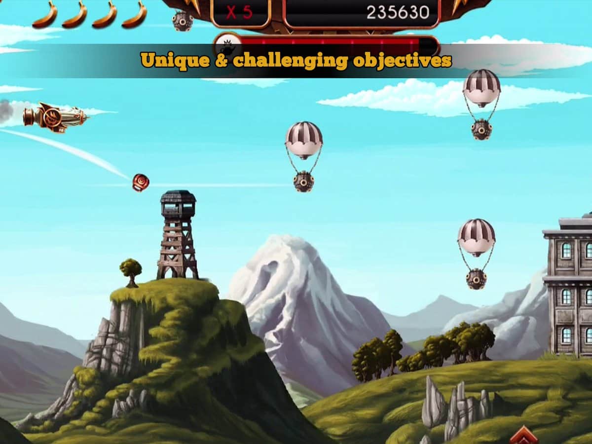 Apestorm: Full Bananas - увлекательная стим-панк игра выполненная в стиле двухмерного сайд-скроллера. События Apestorm: Full Bananas развиваются на некой фантастической планете, населенной обезьянами, планете которая была практически полностью порабощена и разрушена человечеством. Однако революционные настроения все больше захватывали местное население и собравшись вместе, небольшая кучка радикально настроенных обезьян, захватывает боевой дирижабль - бомбардировщик, и отправляется на уничтожение заводов и прочих промышленных объектов возведенных людьми. Управляя летающей машиной, меняя скорость и высоту ваша задача разрушать строения и технику людей, при этом не повредив окружающие их леса. За выполнение заданий вы будете получать премиальные, используя которые сможете превратить дирижабль в настоящего боевого монстра.