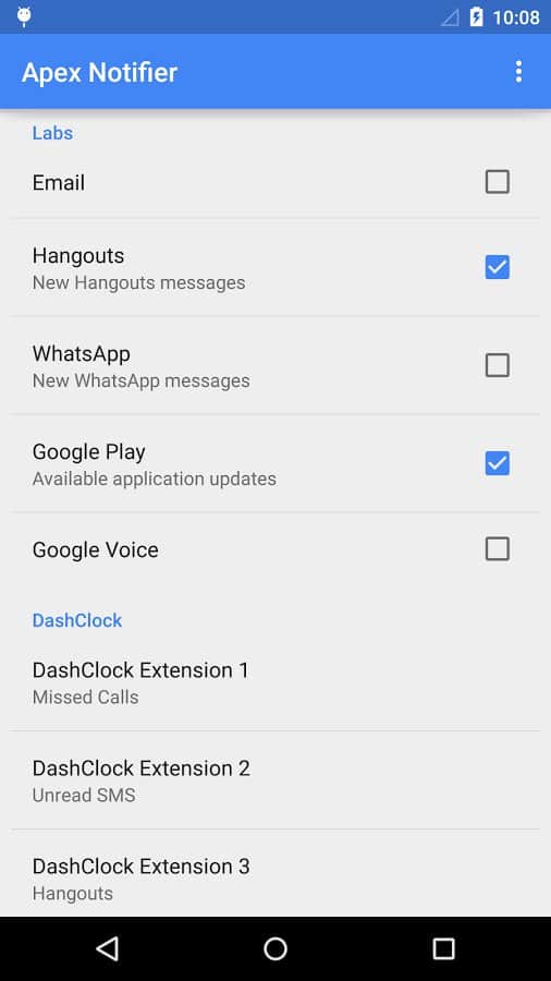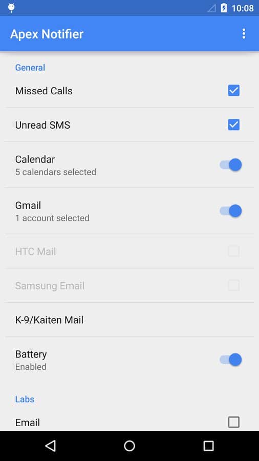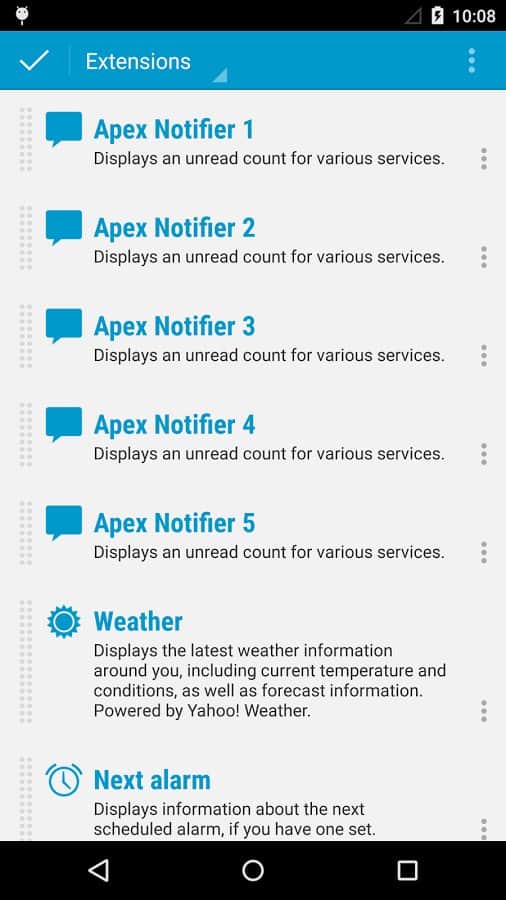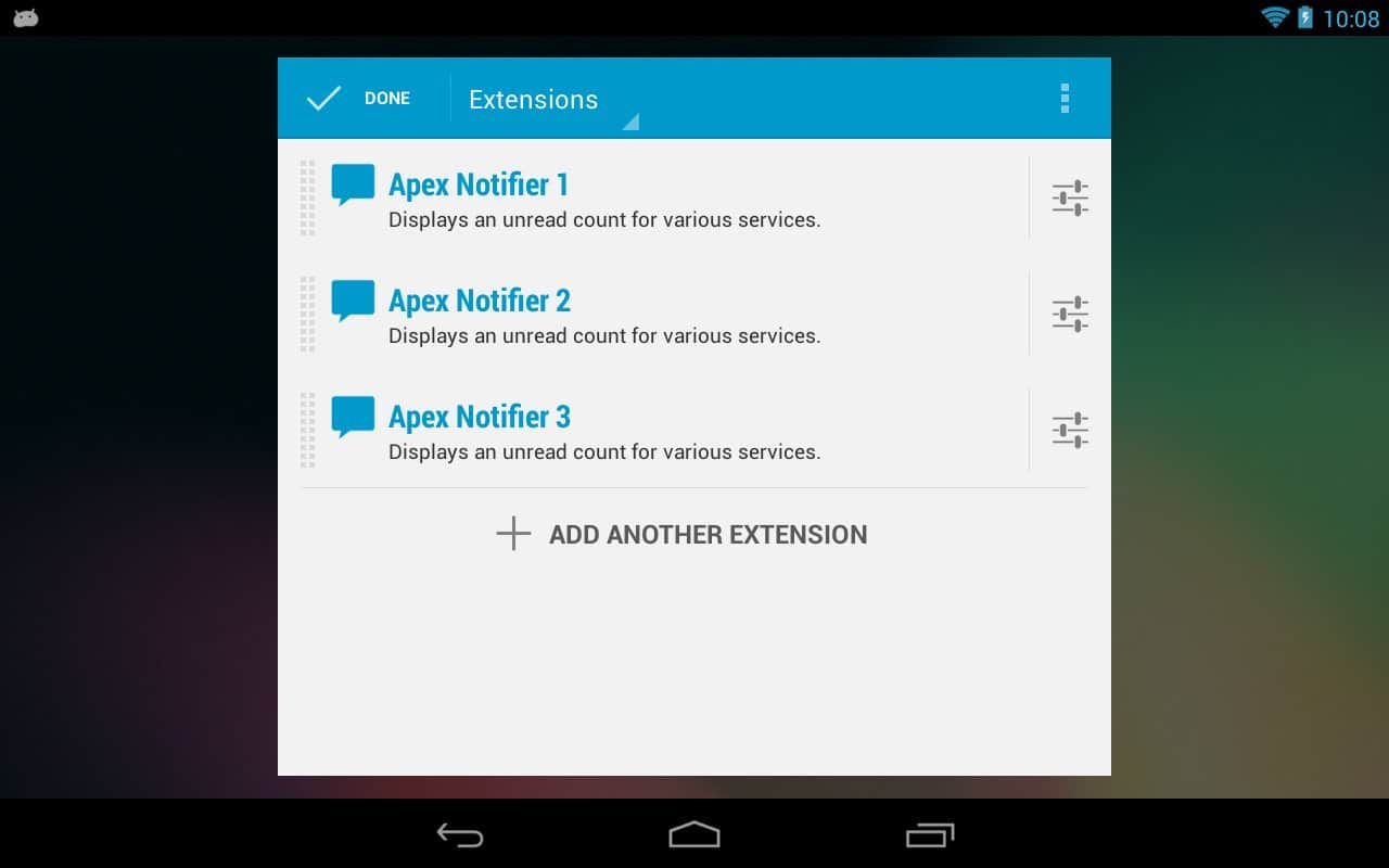 Apex Notifier - Уникальная система оповещения для Apex Launchera. С её помощью вы сможете детально настроить проработанную систему оповещений для всего отдельно. Вам не нужно ставить одну мелодию на всё, вам больше не нужно слушать надоедливые оповещения которые вам не нужны. Вы сможете включить только то что вам нужно, и отключить все остальное. Так же стоит заметить, что это приложение поддерживается на Android wear устройства, что так же является приятным дополнением.