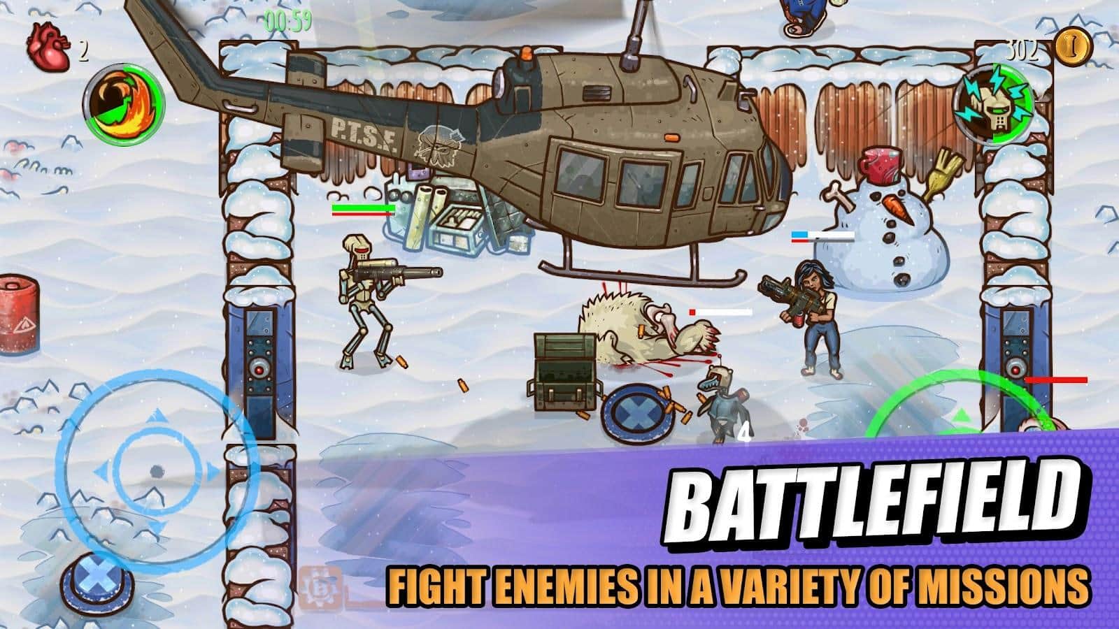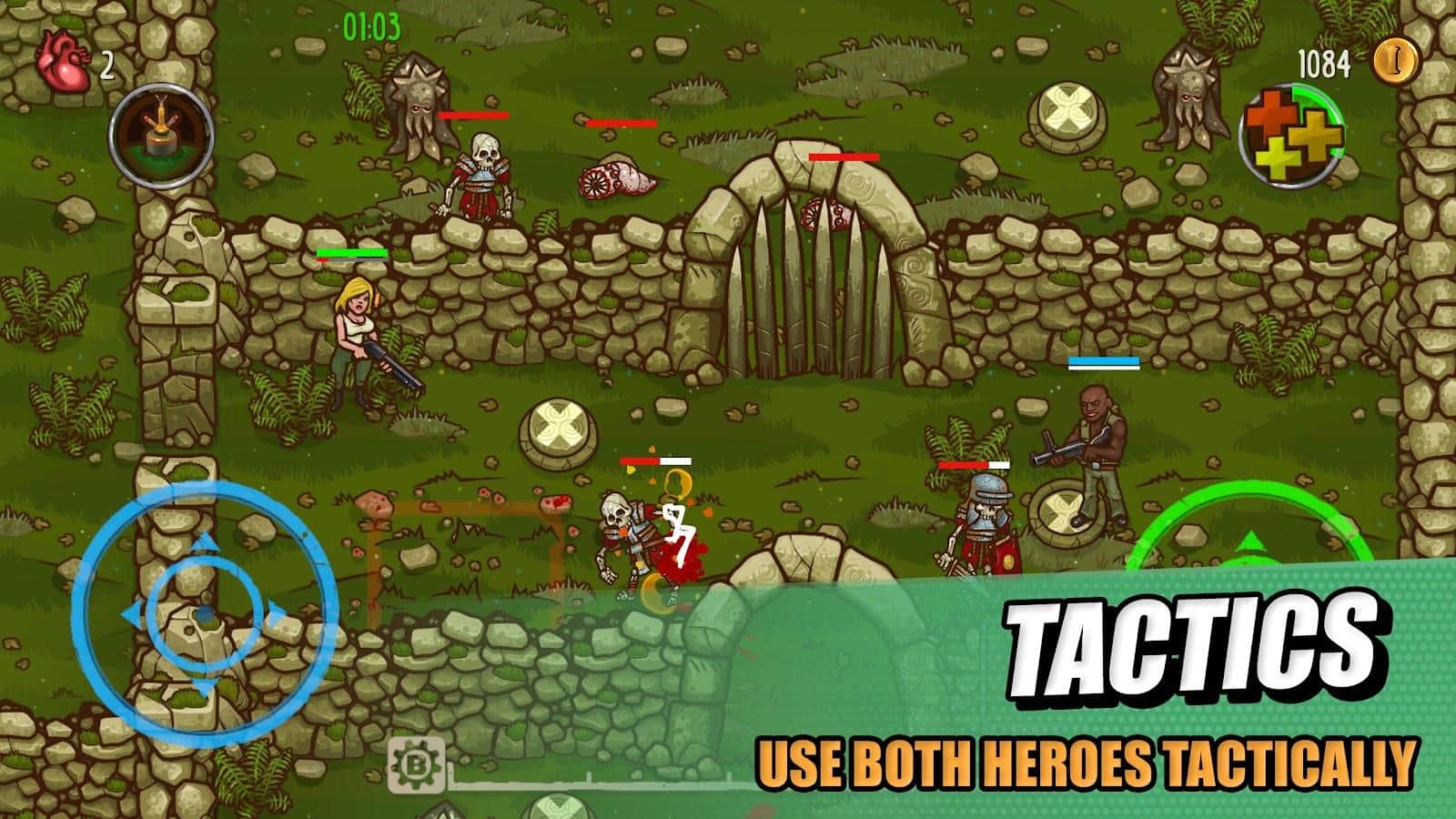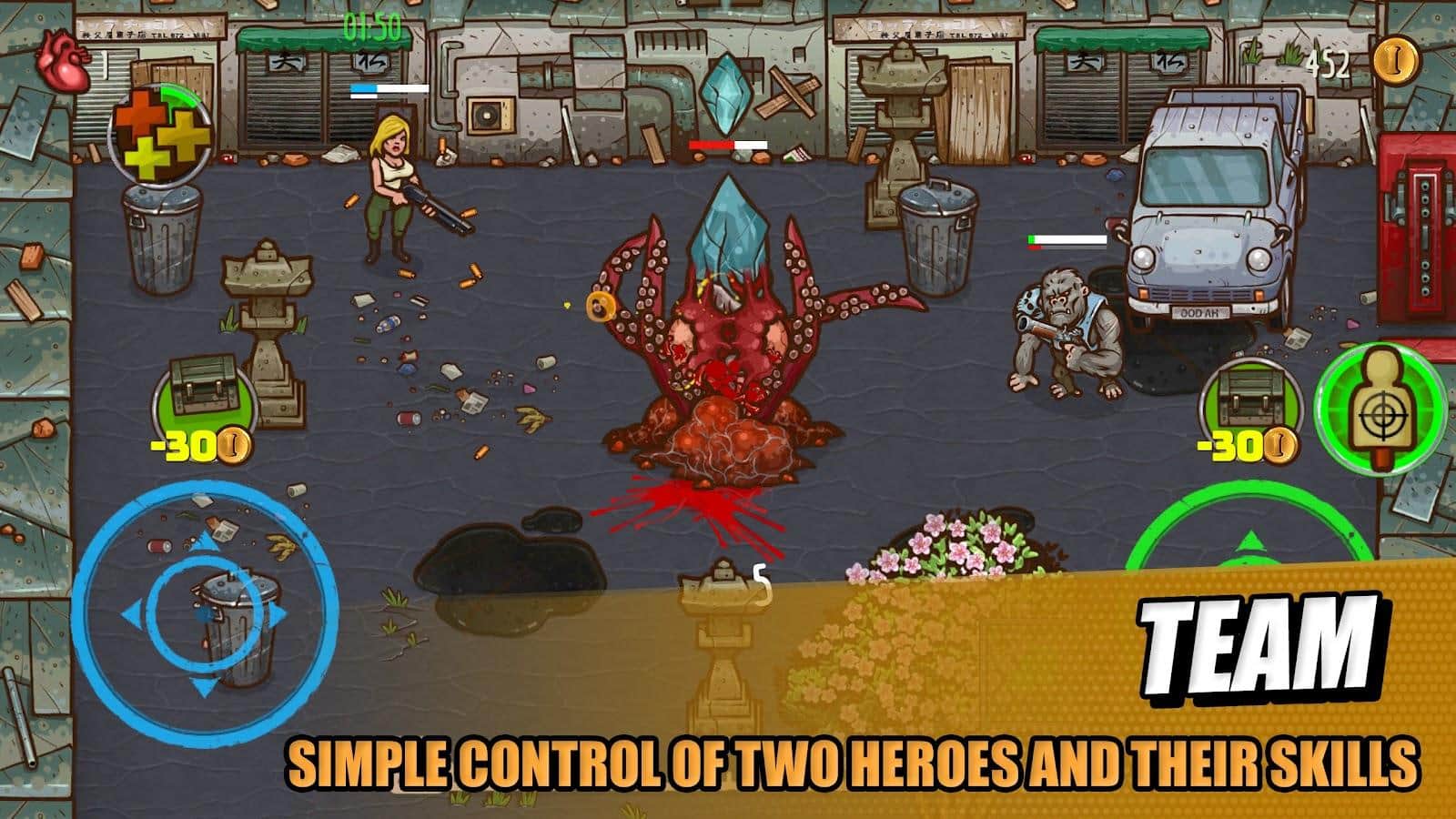 Забавный проект. По умолчанию вы играете за подобие Рэмбо по имени РОН ДЖАМБО, герой апокалипсиса, который в команде с напарниками спасает мир выполняя различные миссии, с целью завоевать и очистить всю территорию от всякой нечисти. В процессе прохождения можно разблокировать и менять скины главного героя, и его напарника, например на киборга по имени "ROBOTA" или на "АЙЛЕН РИПЛАЙ"... привет от Рипли:) и т.д. Визуальная составляющая хорошая, геймплей тоже неплох, и вообще подобный стиль мне по душе. Однако управление с авто-стрельбой, портит всё впечатление. Может я ослеп и не заметил, но возможности сменить не нашёл. В целом неплохо, игра офлайн, присутствует русский язык, весит мало, так что скачивайте и тестируйте, а там уж сами решите плохо или хорошо. 7/10