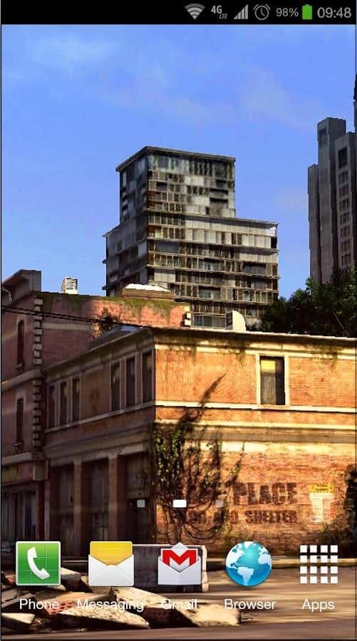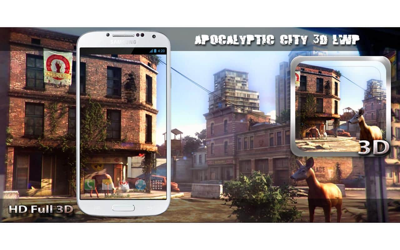 Apocalyptic City 3D LWP – уникальные пост апокалиптические живые обои на ваши андроид телефоны. Благодаря этим обоям вы опадет в город забвения и упадка. Уже давно как наступил апокалипсис и все люди жившие в этом городе, покинули его, теперь этот город стал территорией отчуждения, единственный кто может за ним наблюдать это вы. Установите эти обои в свой телефон или планшет и наблюдайте за происходящим в городе с помощью 12 различных камер. Насладитесь вдоволь заброшенным городом и обстановкой покинутой цивилизации. Эти обои принесут вам чувство спокойствия и расслабленности, не смотря на апокалипсис, произошедший в них.