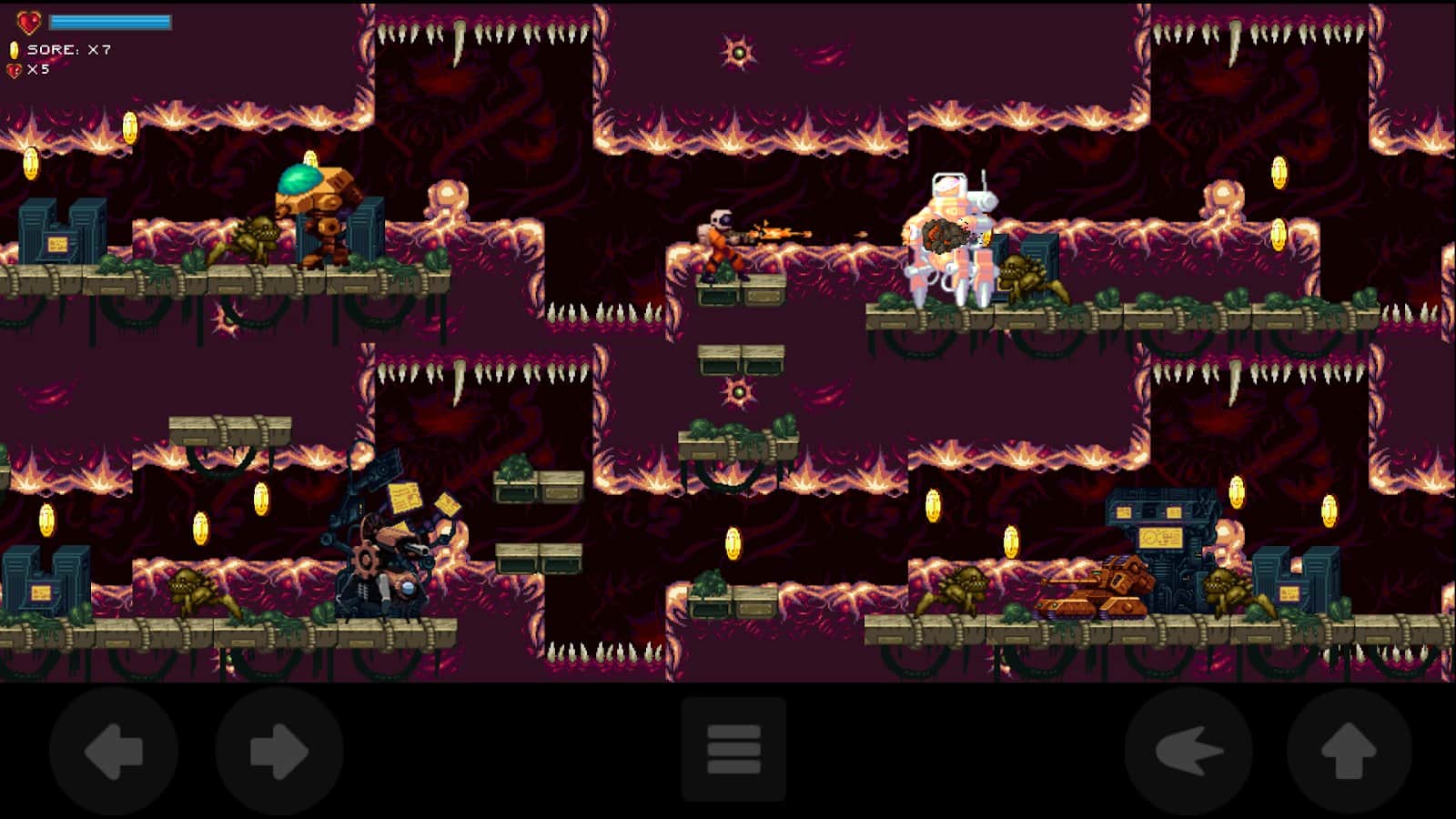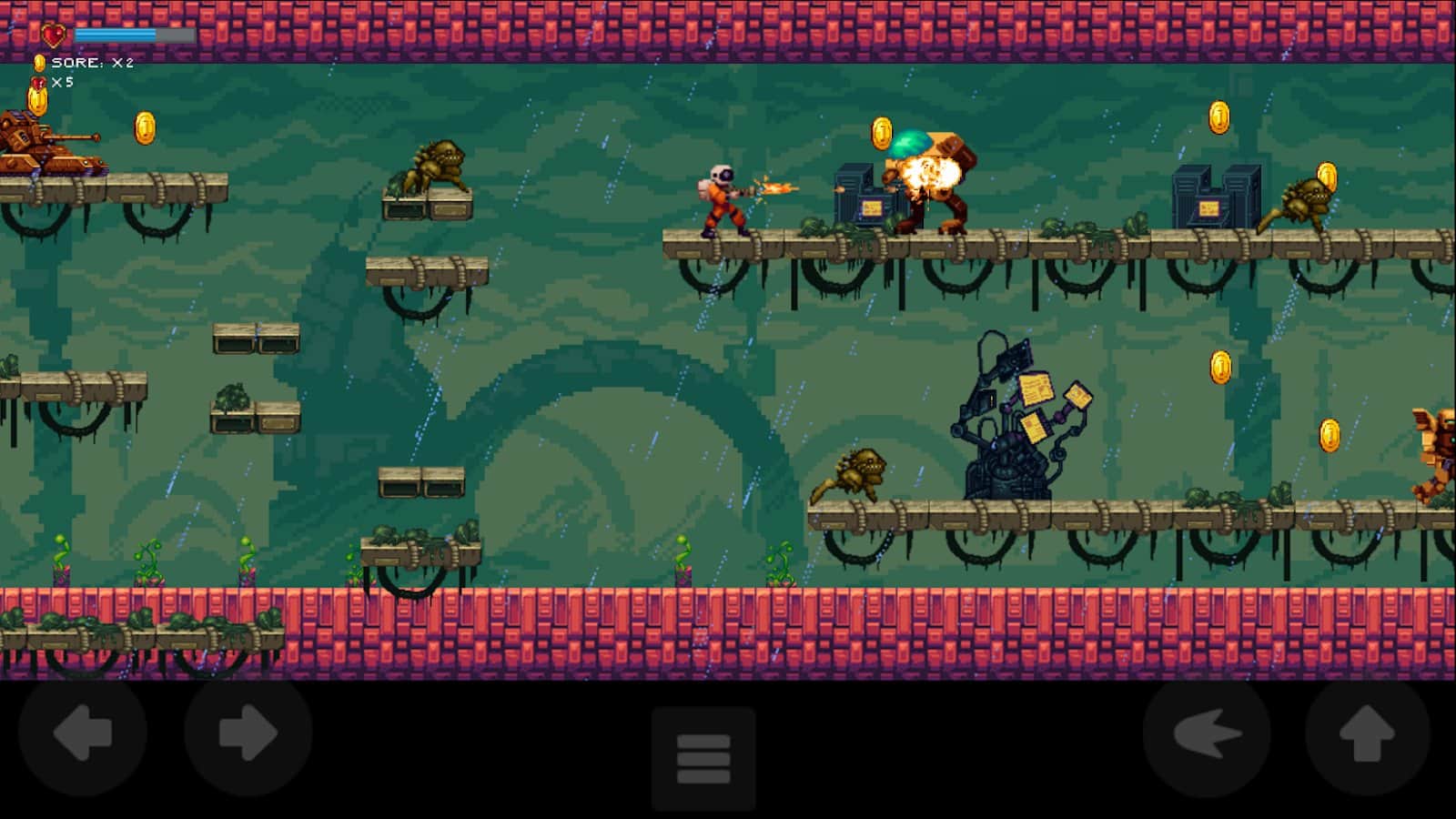 Apogee-X - экшен платформер на Android, вдохновленный классическими играми Apogee 90-х годов «Alien Carnage». Apogee-X был тщательно разработан, чтобы оживить атмосферу D.O.S. с 90-х годов. Эффекты параллакса были настроены, чтобы быть реалистичными, удовлетворяющими и красивыми на вид. Вас ждут фантастические уровни в стиле чистых 90-х, стреляйте во все, что движется, получайте улучшения для своего оружия, собирайте монеты, чтобы заработать больше денег.