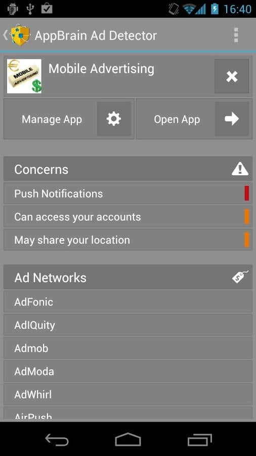 AppBrain Ad Detector - Иногда когда на ваше устройство попадает приложение с рекламой, становится понятно что обычный антивирус здесь не поможет. Ведь в большинстве случаев даже удалив самое приложение реклама остается и автоматически устанавливает вам всякий бред, засоряя не только память смартфона но и убивая его работоспособность. Это приложение раз и на всегда решит данную проблему, с помощью него вы сможете отыскать не только рекламу в приложениях, но и ту которая глубоко засела в вашем устройстве, и удалить её. Тем самым обеспечив нормальную работоспособность устройства, и спокойную жизнь для себя.