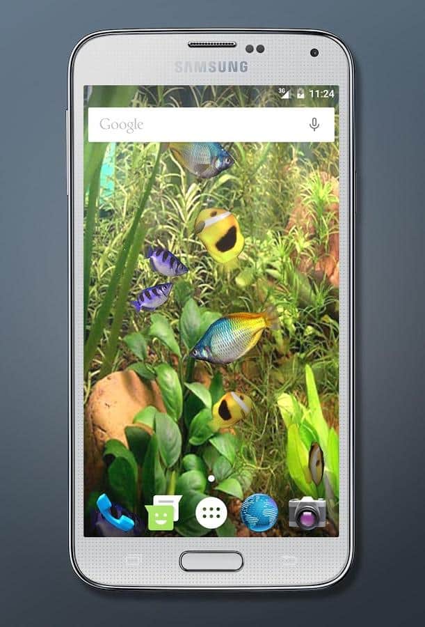 Aqua 3D Live Wallpaper – живые обои на ваш андроид телефон или планшет которые откроют перед вами невероятно реалистичный подводный мир. Установив обои в свой девайс вы получите плавающих среди водорослей и кораллов красивых тропических рыбок разных расцветок. Наблюдайте за красивыми рыбками, которые медленно плавают стаей по вашему экрану в кристально прозрачной воде. Обои также порадуют вас отличным фоном, анимированными пузырьками воздуха и лучами солнца пронизывающими толщу воды. Наслаждайтесь приятной картинкой и фото-реалистичной 3D графикой, которая понравиться вам и вашим друзьям.