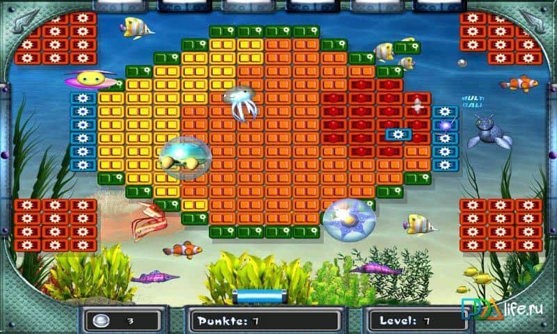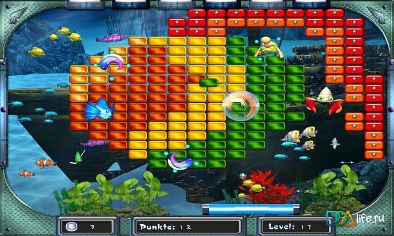 Aquanoid 2 Break the Bricks - арканоид, действия которого проходит в красиво анимированных подводных пейзажах мирового океана. В игре вас ожидает более 300 уровней, неповторимая атмосфера подводного мира со своими обитателями, рифами, косяками рыб и прочей флорой и фауной. В игре предусмотрены различные бонусы, которые непременно помогут вам в трудный момент.