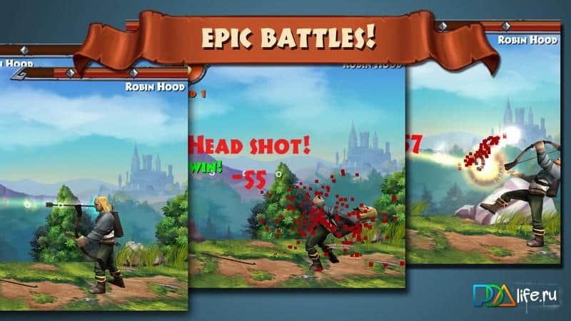 Archers Clash - игра, в которой вам предстоит показать свое мастерское владение луком. Онлайн игра, в которой необходимо первым попасть в соперника стреляя из лука. Чем точнее вы будет стрелять, тем больше у вас будет шансов на победу. Рассчитывайте правильно траекторию полета стрелы и зарабатывайте дополнительные жизни. Для стрельбы вам полагается несколько видов стрел, расходуйте их с умом. Игра порадует вас хорошей графикой и неплохим физическим движком.