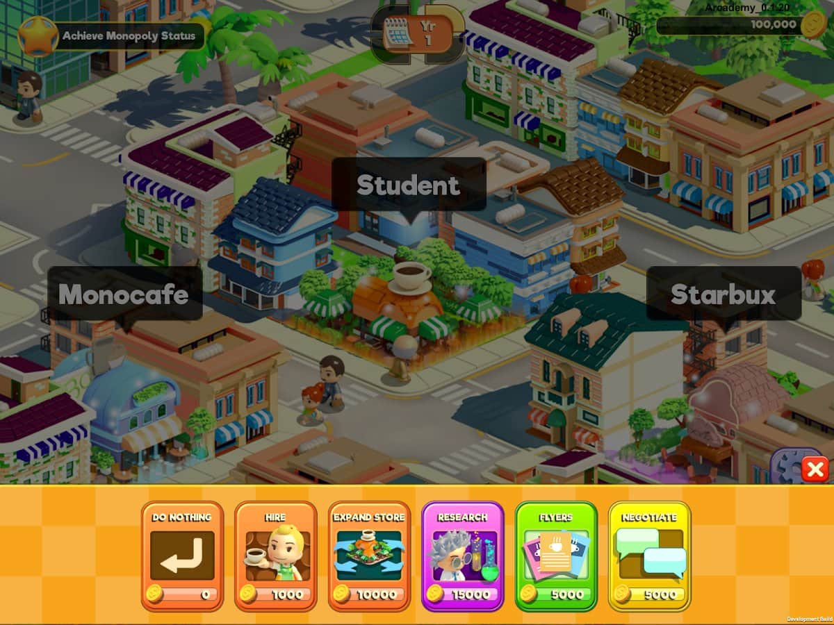 Arctopia: Path to Monopoly - В маленьком городке Arctopia, вы только что были назначен руководителем филиала известного сетевого кофе-кафе, чтобы создать бренд в городе с целью монополизации рынка кофе в городке Arctopia. В игре у вас есть три других основных конкурента и вы должны начать с ними как-то соперничать. Для начала начните с ценообразования на конкурсной основе, чтобы конкурировать с вашими конкурентами. В игре вы отвечаете за принятие ключевых решений и действий, которые направлены исключительно на то, чтобы помочь вашему бизнесу расти и выполнять свою цель, станьте кофейным монополистом в Arctopia!