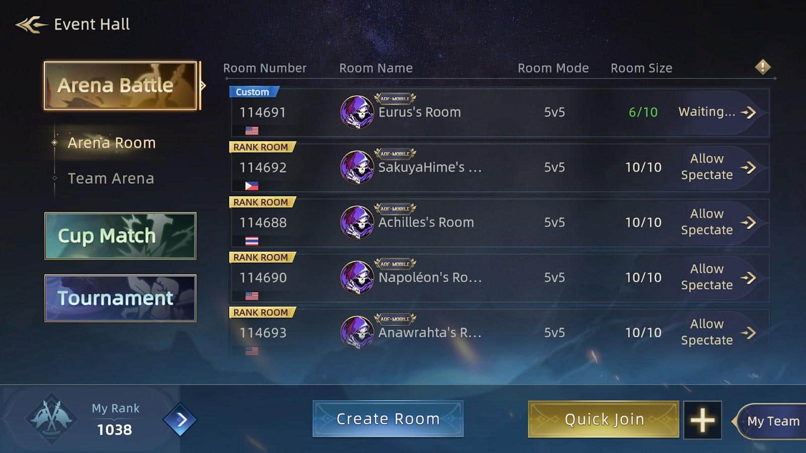 Перед вами список комнат в 10 человек, заходя в неё, вы ожидаете пока соберётся определённое количество людей и хозяин локации запустит игру.