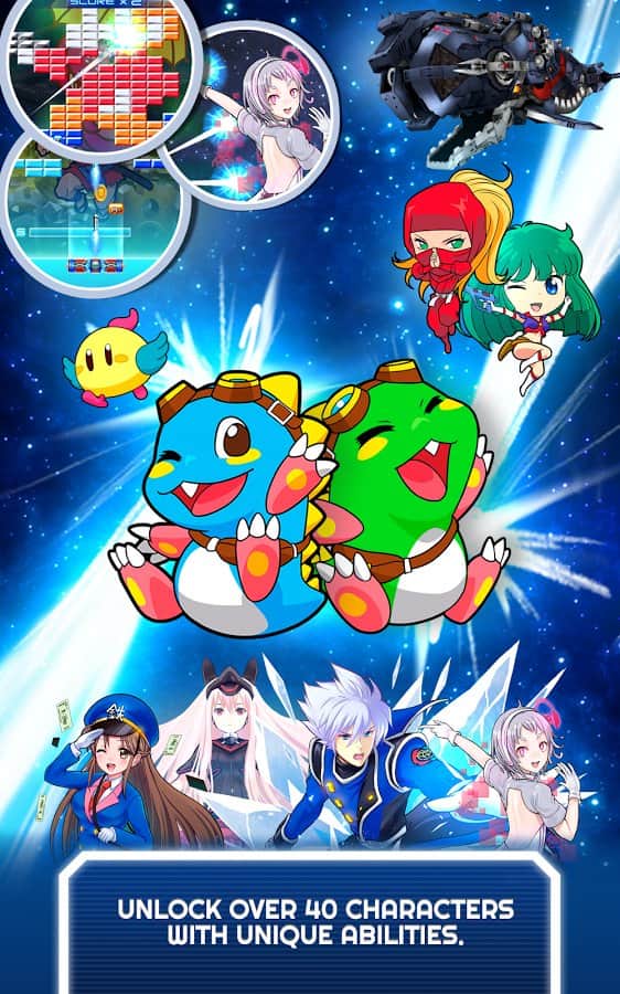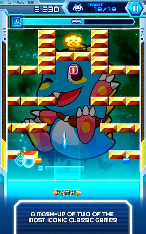 Arkanoid vs Space Invaders – аркада на андроид, в которой объединились две популярные игры, такие как Arkanoid vs Space Invaders. В этой игре вашей главной задачей будет уничтожить многочисленных противников и вступать в схватку с сильными боссами. Стреляйте по врагам и уничтожайте как можно больше блоков одним ударом. Накапливайте свою энергию и вступайте в режим атаки уничтожая все на своем пути. Применяйте в бою более 20 различных способностей и решайте непростые задачки и головоломки. Уничтожайте трехмерных боссов и спасите галактику. Открывайте для себя новых героев, которых в игре представлено более 40.
