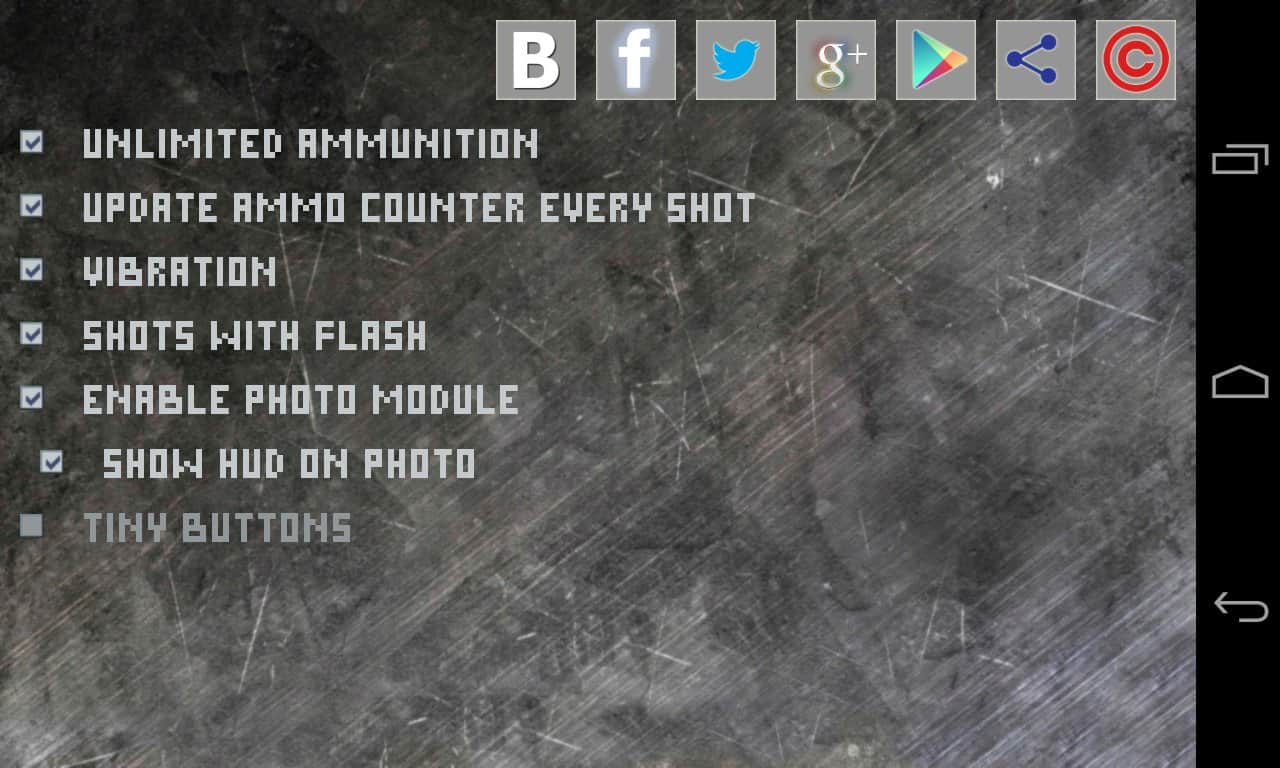 Armed Cam – забавная игра в стиле аркада (тир) для вашего андроид устройства, которая позволит вам снять напряжение, после трудного рабочего дня. Делайте снимок своей фотокамерой и займитесь уничтожением обидчика или неприятеля. Кого, как и чем убивать решать вам. Игра Armed Cam предлагает на этот счет просто огромное количество оружия. Созданными снимками можно делиться с друзьями через электронную почту, Facebook, Twitter, WhatsApp, Gmail, Google +, Instagram, AllShare, Bluetooth, Cymera, Drive, сообщений, редактор фото, Picasa, Social Hub, Wi-Fi. Приятного снятия стресса!