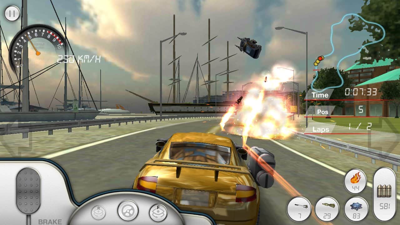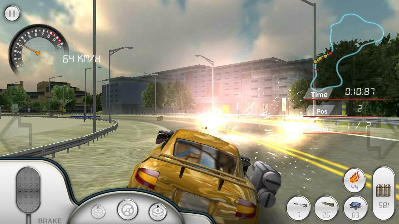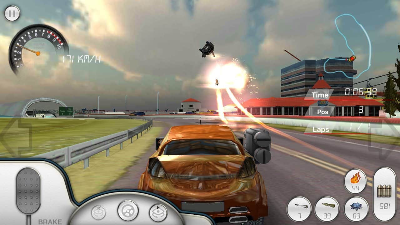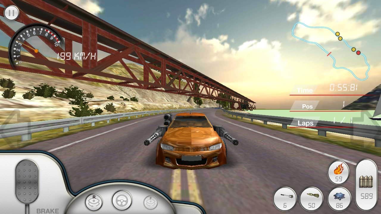 Armored Car HD - Простенькие гонки на андроид по кольцевым трассам на машинах с оружием. Вы можете стрелять как обычным пулеметом, так и ракетами с тяжелыми повреждениями. Всего в игре насчитываются четыре трассы, и четыре машины, а также три режима игры: стандартные гонки, на выживание, и режим преследования. К сожалению, в игре очень много недоработок, а вся гонка, и боевая система слишком резкая.