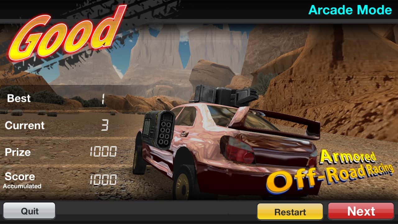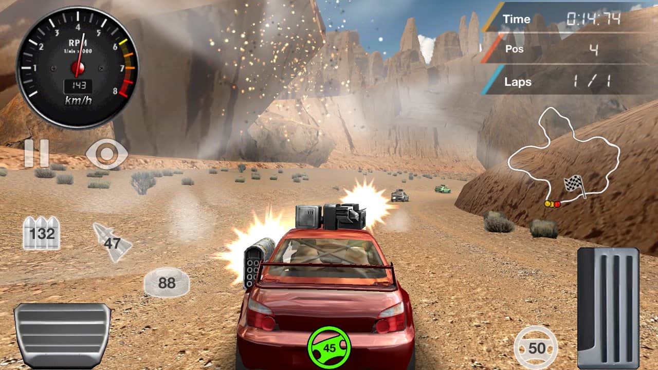 Armored Off-Road Racing - Аркадный андроид гонки на автомобилях с оружием. Игра больше похожа на ралли, так как все гонки происходят по бездорожью. Всего в игре насчитывается восемь различных треков и четыре разных автомобиля. Катайтесь по трассам, стреляйте по соперникам, и выиграйте гонку. Игра очень проста, поэтому более подходит как тайм киллер.