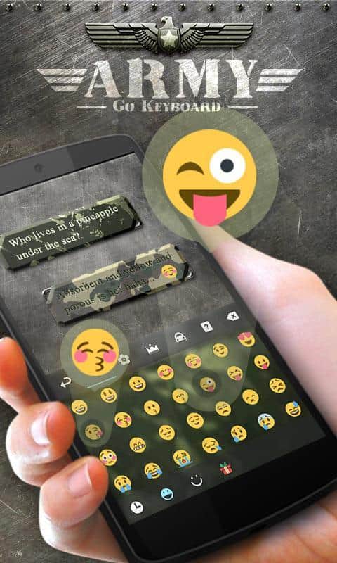 Army GO Keyboard Theme Emoji Любите военную тематику, и хотите внести её в свою клавиатуру? Теперь это не проблема, данное приложение добавит вам её, используя GO Keyboard. Однако будьте внимательны, без установленной клавиатуры GO Keydboard, данная тема работать не будет! Так что сперва вам стоит загрузить её. Красивая тема, в совокупности с отличной клавиатурой, станут хорошим дополнением вашему смартфону.