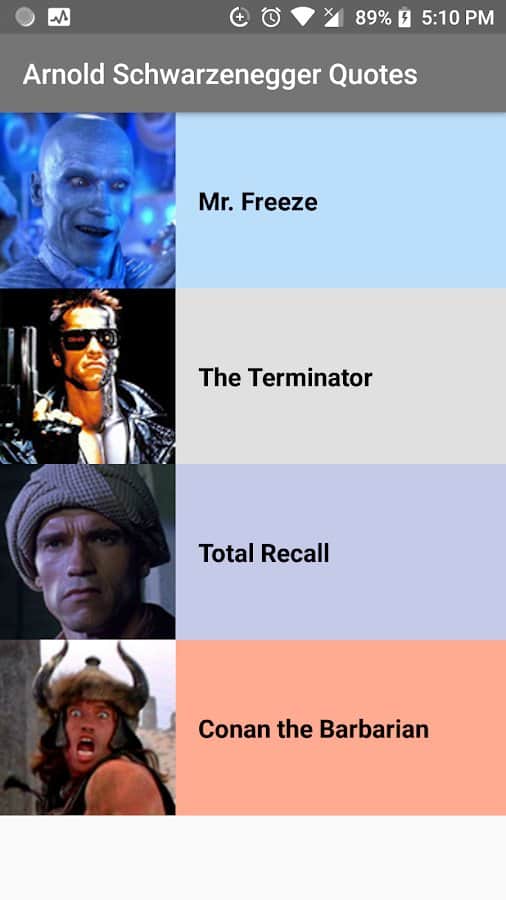 Наверняка всем вы смотрели фильмы с участием легендарного актёра Арнольда Шварценеггера, который высказывал запоминающиеся и оригинальные фразы в своём диалоге. Именно они входят сборник цитат приложения Arnold Schwarzenegger. с этой программой Вы можете блеснуть своей неординарностью и интеллектом, говоря на языке Шварценеггера из фильмов Бэтмен, Терминатор в нескольких частях, Конан-варвар, Хищник и другие. Вы можете как следует развлечься и создать дружескую позитивную атмосферу, где бы вы ни находились, разрядив напряженную обстановку между собеседниками. Отсутствие рекламы и платных подписок понравится каждому пользователю.