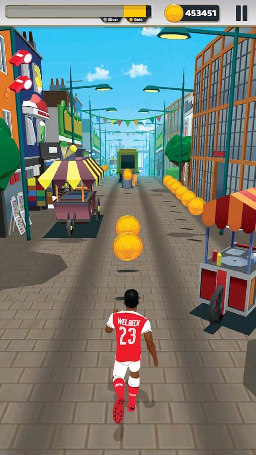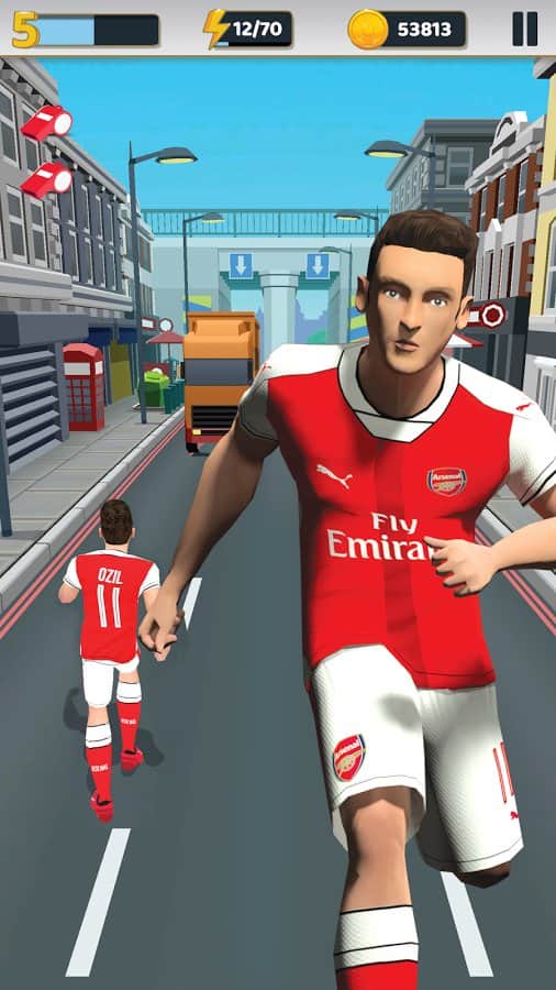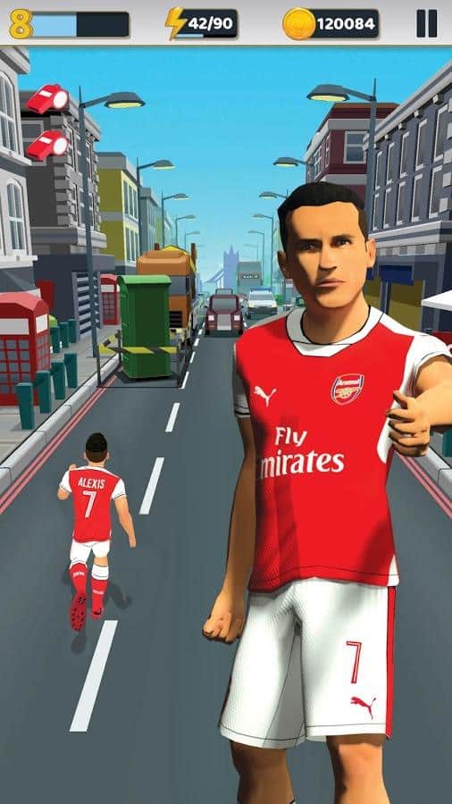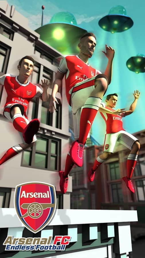 Arsenal FC - Endless Football – раннер на андроид, где вам предстоит спасать город от инопланетян. В этой игре вы будете помогать футболистам из клуба Арсенал спасать Лондон от вторжения пришельцев. Бегайте, прыгайте и обходите все преграды у себя на пути, а также побеждайте коварных инопланетян. Выбирайте себе понравившегося футболиста и проведите его по все улицам Лондона, перемещаясь в разные стороны, перепрыгивая преграды или проскальзывая под ними. Покажите на деле скорость ваших пальцев и успевайте нажимать на экран в нужный момент. В этой игре вам также помогут победить пришельцев многочисленные усиления в виде магнитов и энергетических щитов.
