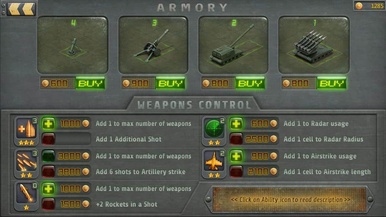 Artillerists – тактическая стратегия на андроид, сделанная по подобию настольной игры «Морской бой». В этой игре вы попадете на поле, на котором сможете расставлять свою военную технику так чтобы она была незаметна для врага. Расставляйте артиллерийские расчеты, радарные установки и применяйте мощные авиаудары, открывайте залповый огонь по врагам, а также применяйте самонаводящиеся ракеты. Вычисляйте где находиться массовое скопление техники противника и открывайте огонь. Также улучшайте и модернизируйте свою технику, приобретая боеприпасы и дополнительные ракеты. Разрабатывайте свою стратегию для каждого игрового поля, которые отличаются размерами сражений и различными погодными условиями. Выполняйте поставленные миссии и прокладывайте свой путь к победе.