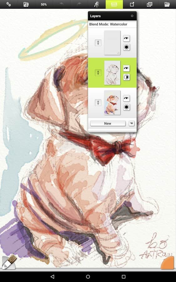 ArtRage - проявите творческий подход к созданию настоящих произведений искусства. В ваших руках полноценный набор инструментов для рисования маслом и акварелью. Попробуйте рисовать карандашом и получите новый положительный опыт рисования на вашем мобильном устройстве. Приложение отслеживает сколько краски осталось, на сколько она влажная и т.д. на вашу работу так-же влияет влажность кисти и бумаги и также холст на котором вы рисуете. Любую фотографию вы так же можете превратить в картину, стоит только настроить фильтр. Приложение предназначено для работы на различных разрешениях и поддерживает все ориентации экрана.