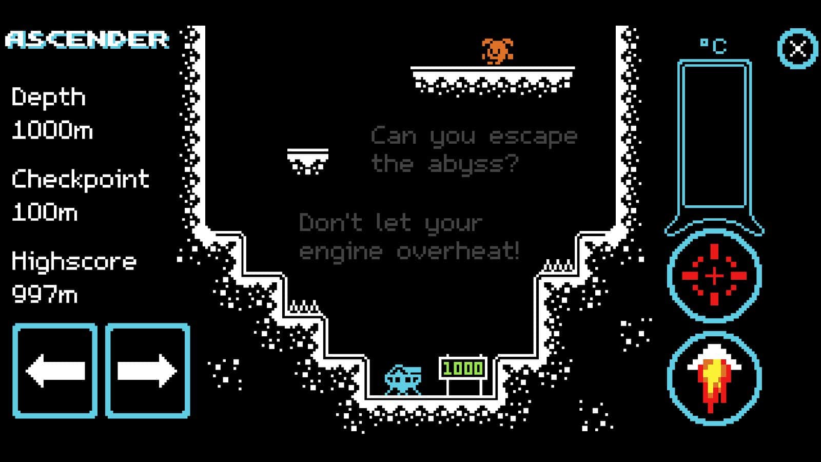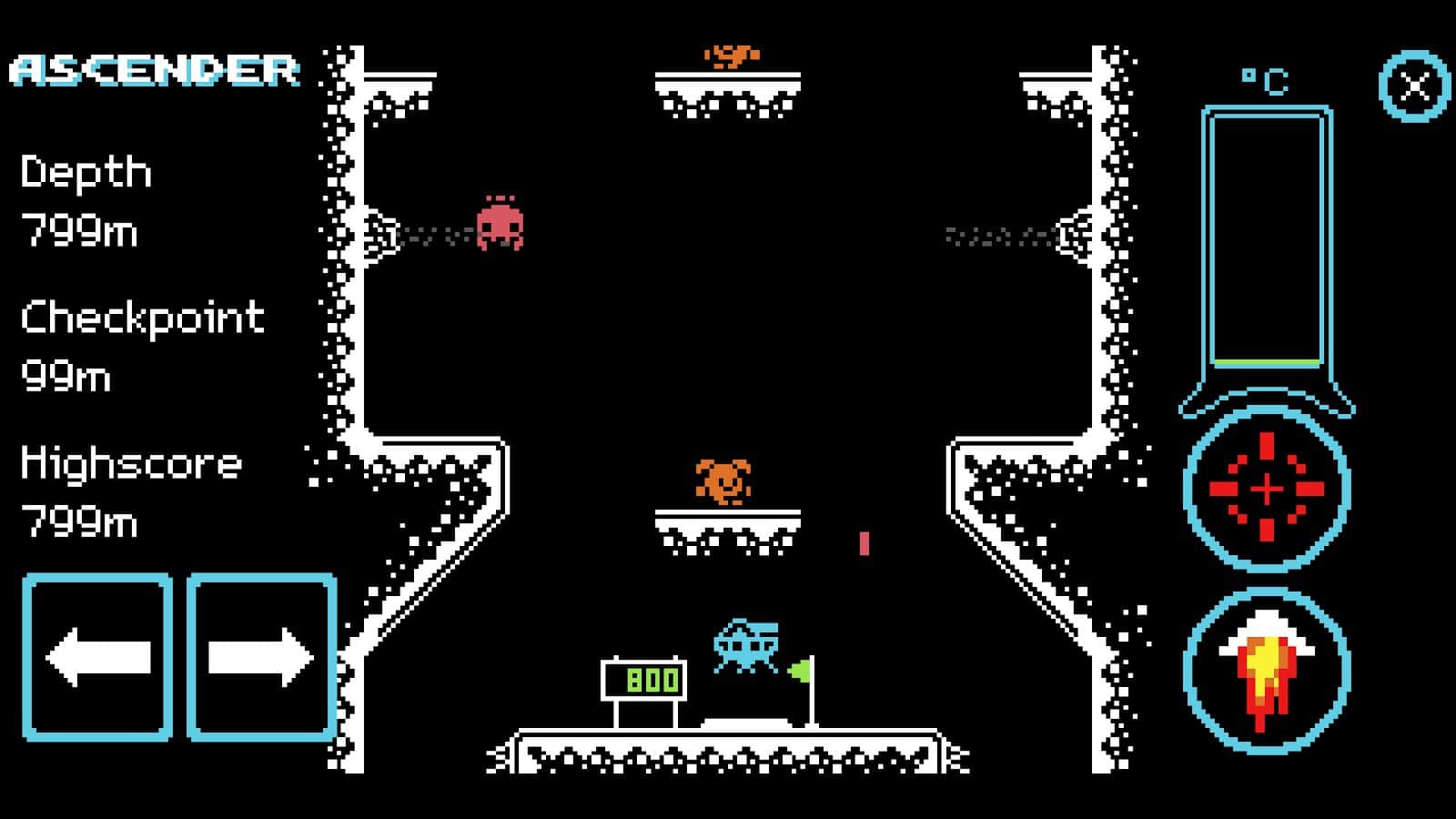 Погрузитесь в ностальгический мир пиксельной графики и чиптюна с нашей уникальной 8-битной аркадной игрой Ascender.Ваше путешествие начинается в глубинах таинственной пропасти, где вас ждет захватывающее приключение, полное испытаний и опасностей. Передвигайтесь по сложному ландшафту, используя простое и интуитивно понятное мобильное управление. Но будьте осторожны: ваш двигатель может перегреться, если вы не будете внимательны. Чтобы достичь вершины, вам придется балансировать между скоростью и контролем, стратегически планируя каждый шаг. Игра предлагает 1000 метров уникального дизайна уровней, где вас ждут разнообразные препятствия, секреты и симпатичные враги, которых нужно победить. Каждые 100 метров вы найдете контрольную точку, где сможете перевести дух и подготовиться к следующему этапу восхождения.