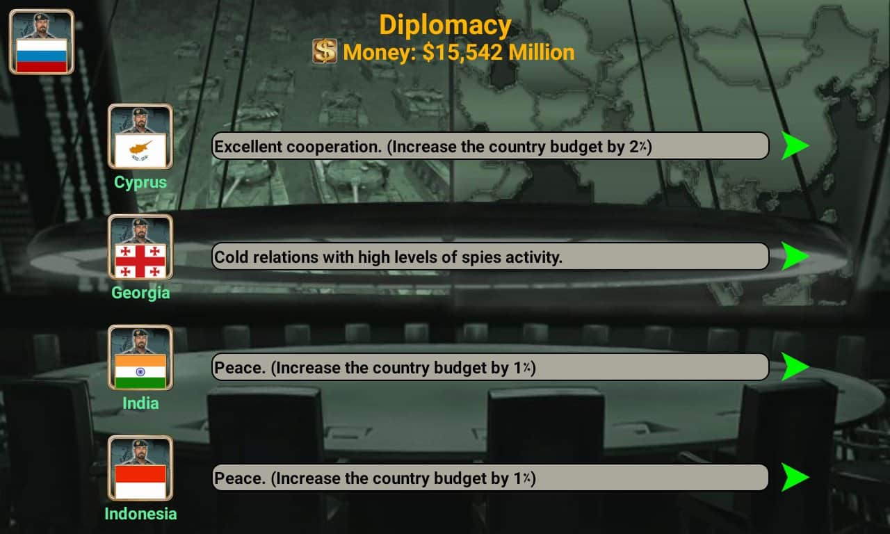 А главный минус-большой (хотя и минимальный для своего сигмента) уклон на откровенные военные действия,типичный для андроид стратегий,что ставит под вопрос реалистичность политической модели игры.Но в целом-игра лучшая в своём жанре для данной платформы.