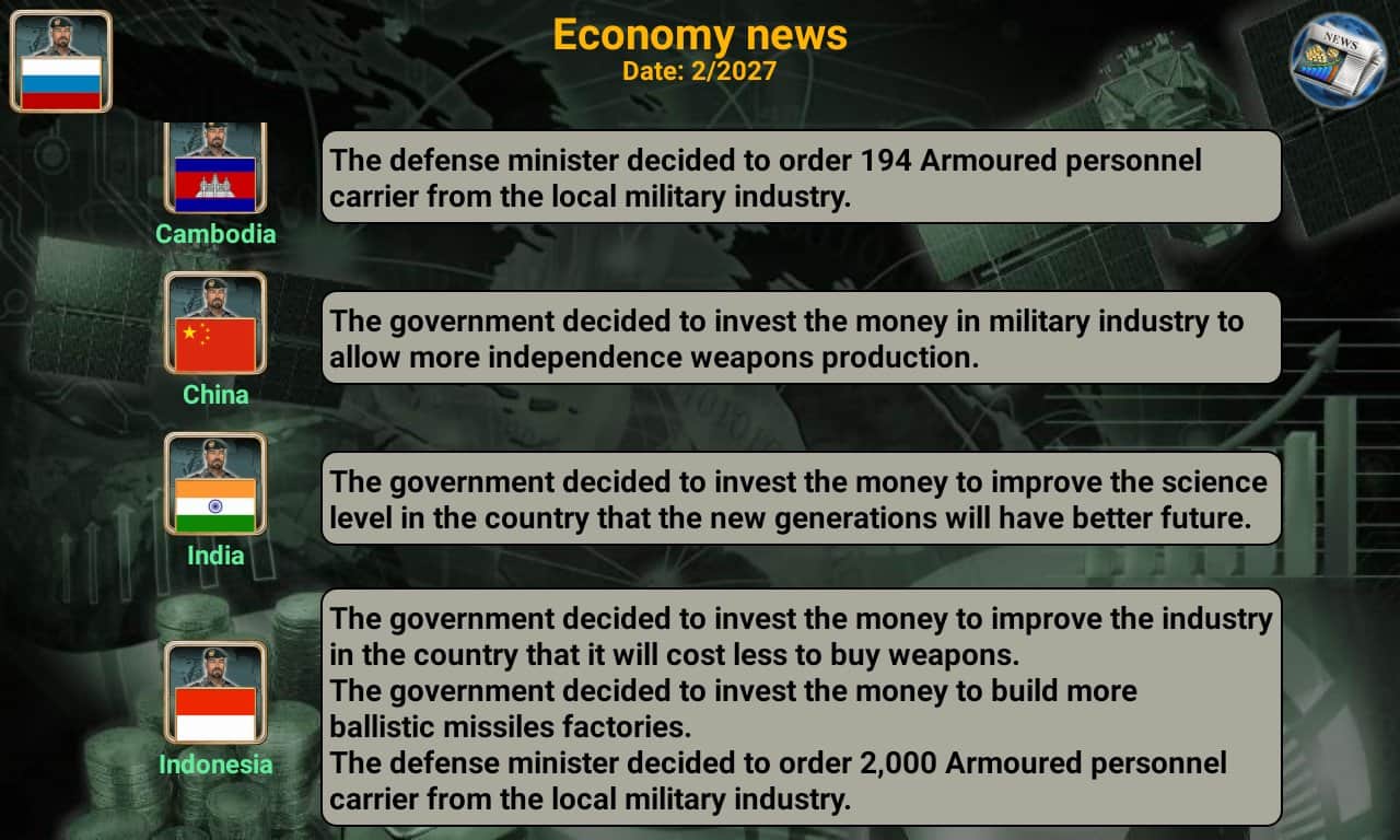 А, и ещё мне понравились "новости", в которых понятно расписано, что страна сделала с другой страной. А и новости отношения. Туда кидаются предложение о мире, и многое другое.