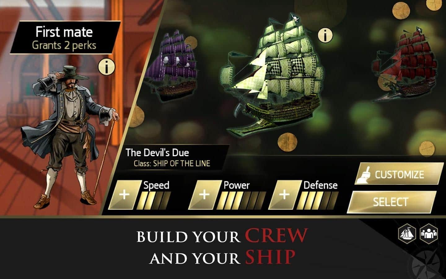 Система прогрессии: Улучшать свой корабль, нанимать уникальных членов экипажа и менять судна (от маленьких шлюпов до огромных мановаров) действительно затягивает.