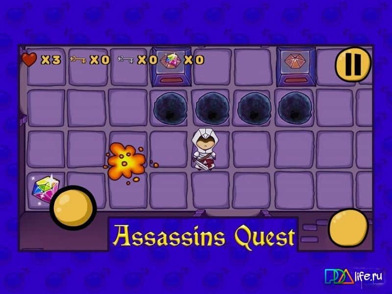 Assassins Quest – игра рассказывает историю одного храброго воина, который отправился поиски своей возлюбленной. Приключения будут опасными, на каждом шагу подстерегают различные опасности, монстры поджидают в тёмных лесах. Но невзирая на все опасности вы продвигаетесь в дальше и дальше и постепенно приближаетесь к своей любимой. Находясь в башне полной лабиринтов нужно проявить все свои способности для того чтобы проходить один зал за другим.
