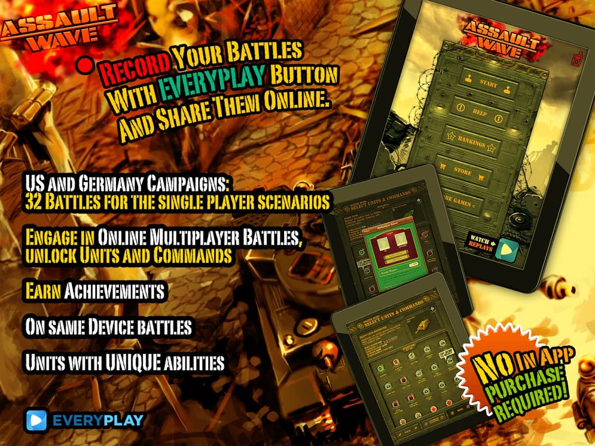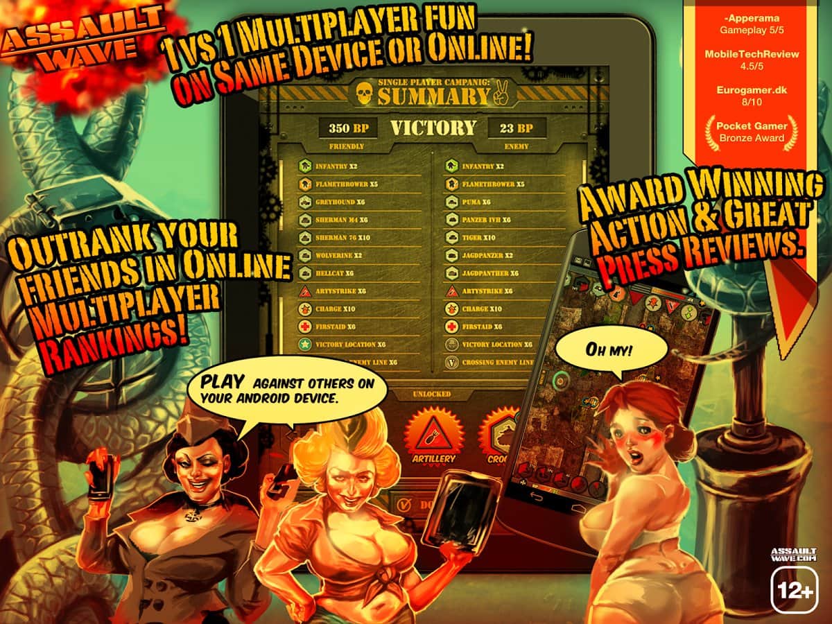 Assault Wave - Очень качественная стратегия на андроид, которая имеет полностью трехмерную графику. Война будет проходить между США и Германией. Игра может похвастаться наличием режима сражений на одном устройстве. Всего в игре шестнадцать уникальных карт для сражений. В игре есть и другие не менее интересные режимы. Так например вы сможете поиграть друзьями онлайн через интернет. Игра получила хорошие отзывы от множества игровых печатных изданий.