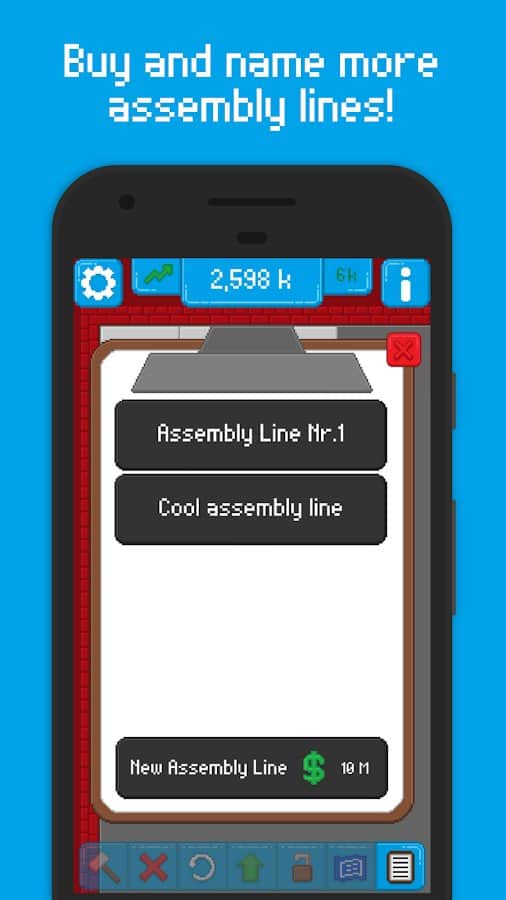 Assembly Line - Ваш бизнес будет напрямую процветать от того, чем больше продукции будет вырабатываться на сборочной ленте. Так как вы только начинаете, в самом начале лента приносит не много микросхеи, но со временем вы сможете её значительно улучшить и сделать процесс намного быстрее. Кроме количества, у вас будет возможность повысить качество, так как чем лучше сама сборочная линия — тем проще получить ресурсы посложнее. Всего у вас будет 12 механизмов, больше 20 обновлений и 40 ресурсов для производства.