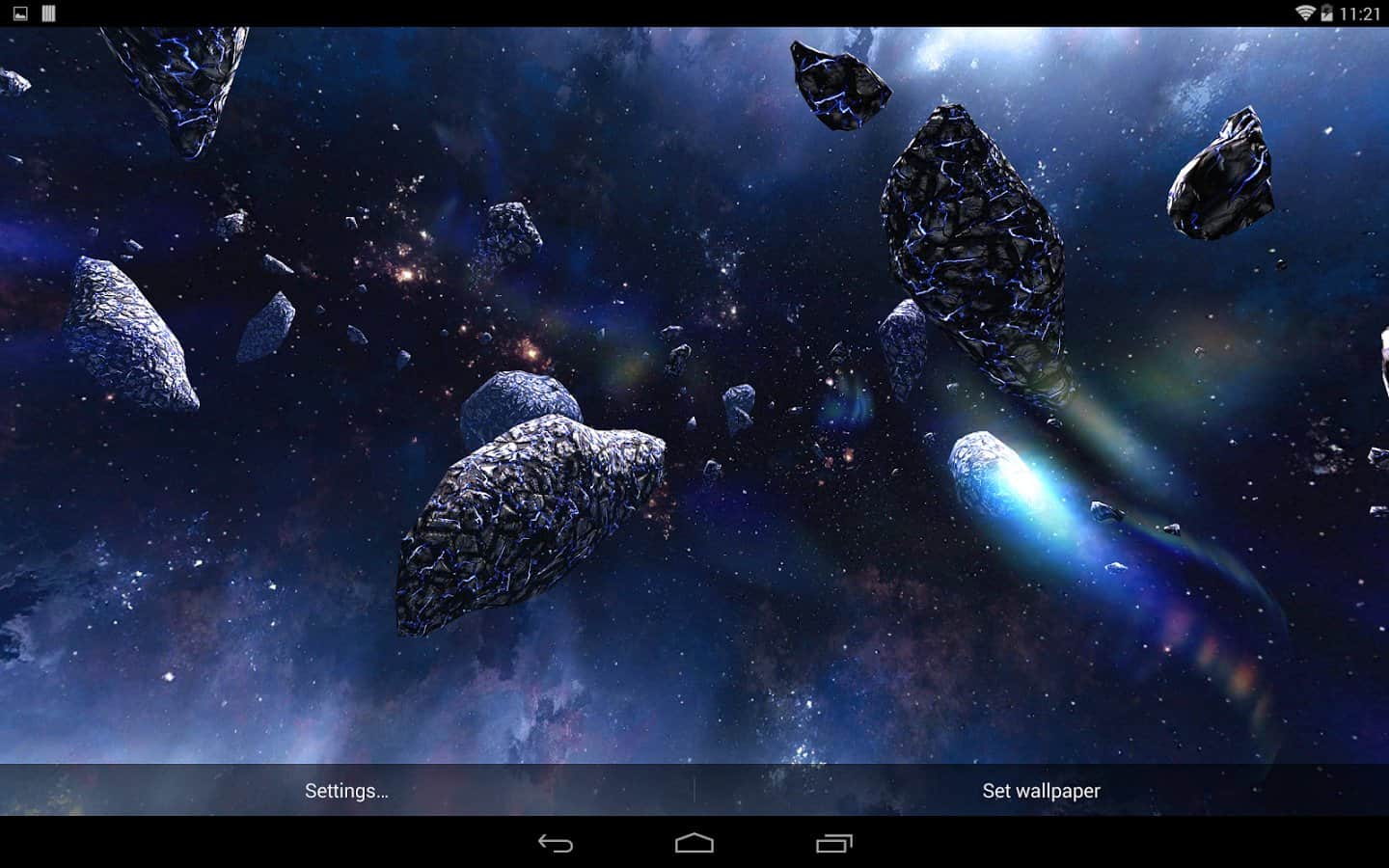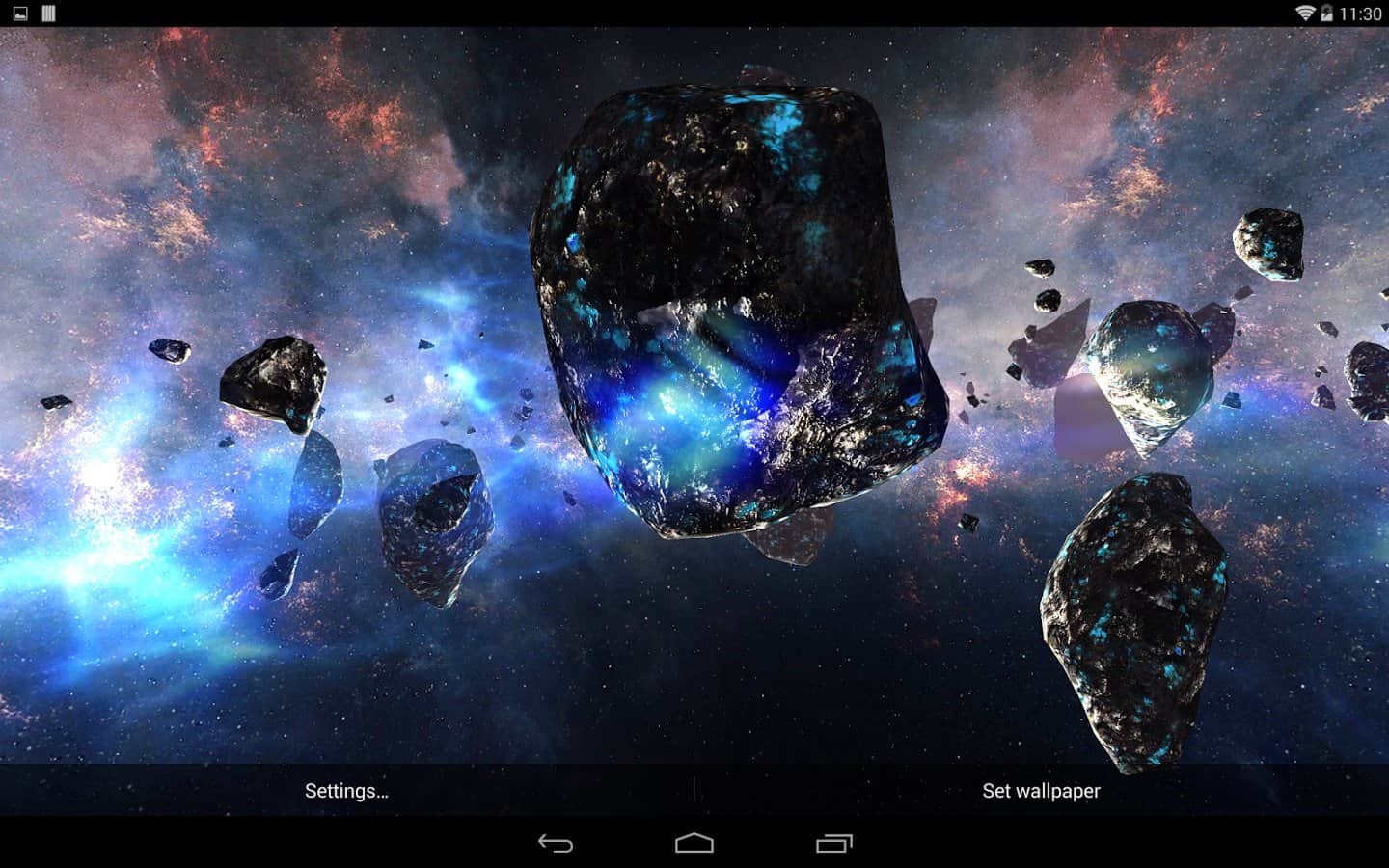 Asteroids Pack – шикарные живые обои для вашего андроид устройства, которые перенесут вас в поток астероидов космического пространства. Все выглядит достаточно эффектно и реалистично. Обои содержат динамическую камеру, большое количество видов 3D астероидов, различные настройки, с помощью которых можно задать фон, свет, ауру пространства. Приятных путешествий!