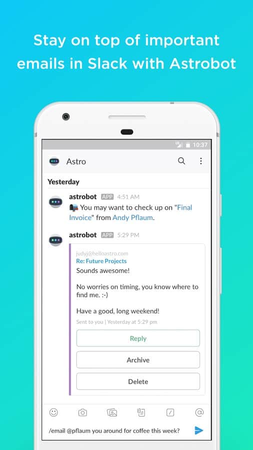 Astro: AI Meets Email - Соедините все свои почтовые клиенты в один для максимального удобства. Теперь вы сможете читать и отвечать на любую почту из одного клиента, это не только максимально просто но и очень практично. К тому же этот клиент практически не занимает места и сможет оповещать вас о всех входящих письмах. При необходимости можете включить время в промежуток которого оповещения приходить не будут.
