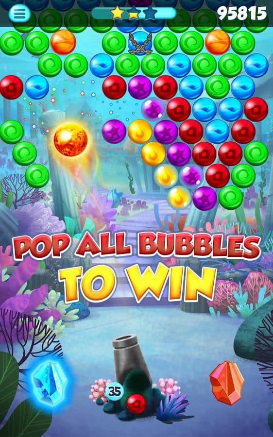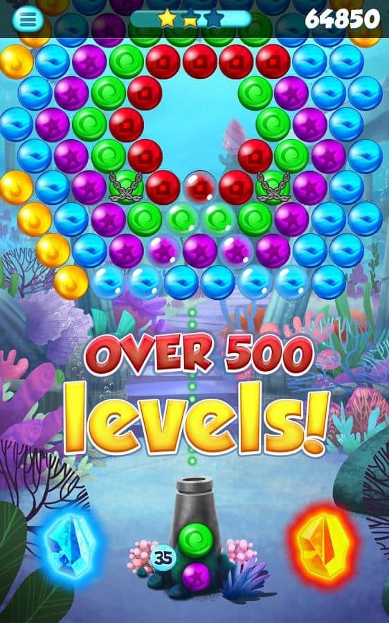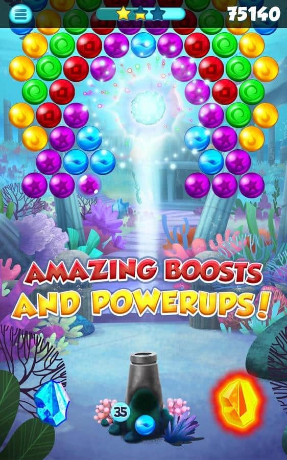 Atlantis pop – увлекательная игра на андроид, которая опустит вас на морское дно, где вы будете взрывать пузыри. В этой игре вы сможете самостоятельно разгадать тайну Атлантиды. Путешествуйте по подводному миру и стреляйте в скопление пузырей находящихся в верхней части экрана из пушки. Собирайте по три и более одинаковых пузырей в ряд и взрывайте их. Соберите ряды из семи пузырей и получите отличный бонус – бомбу, которая сможет взорвать максимальное количество пузырей. Проходите уровни за минимальное количество выстрелов и получайте по три звезды на каждом уровне. Применяйте многочисленные бонусы и пройдите более 500 уровней.