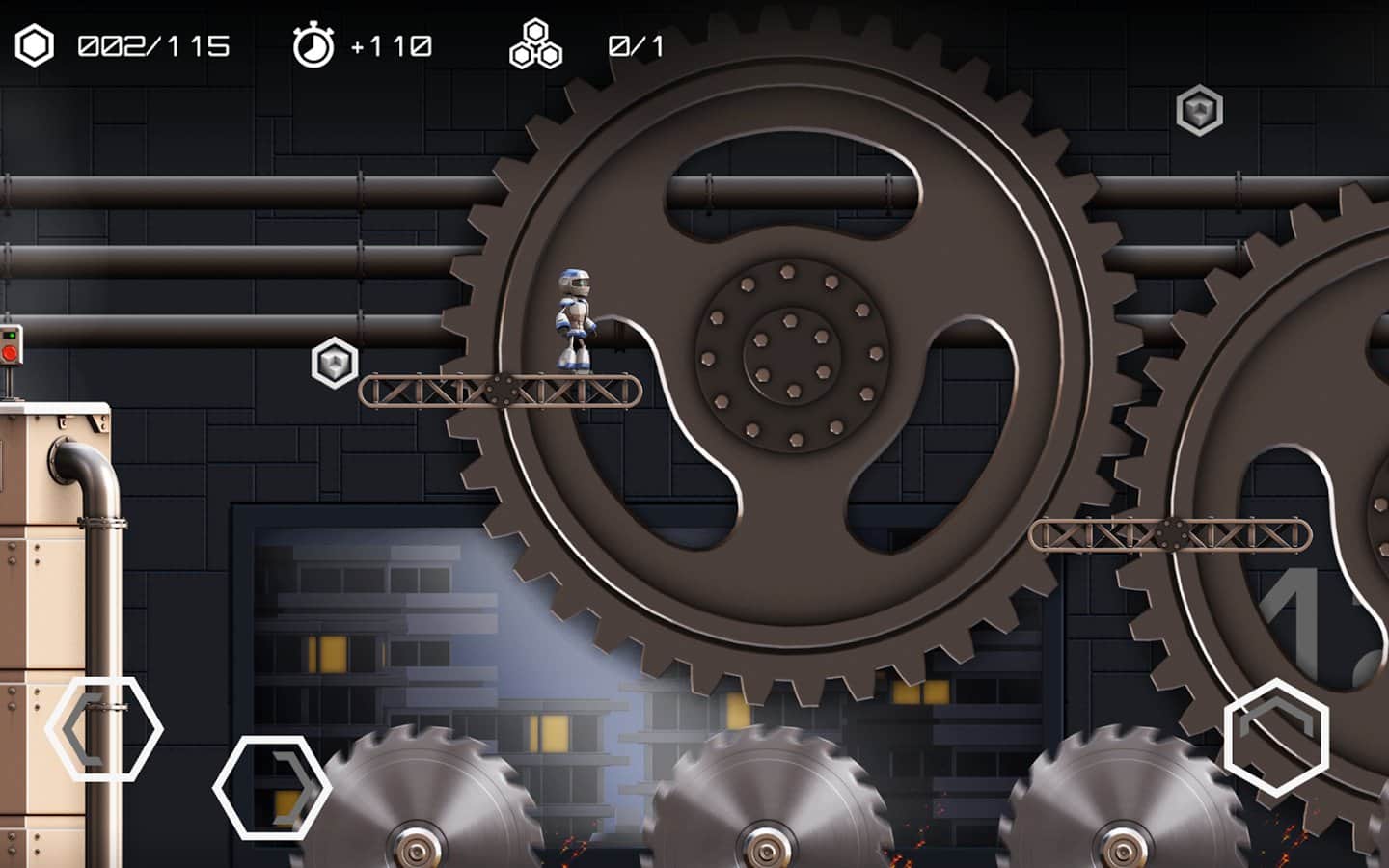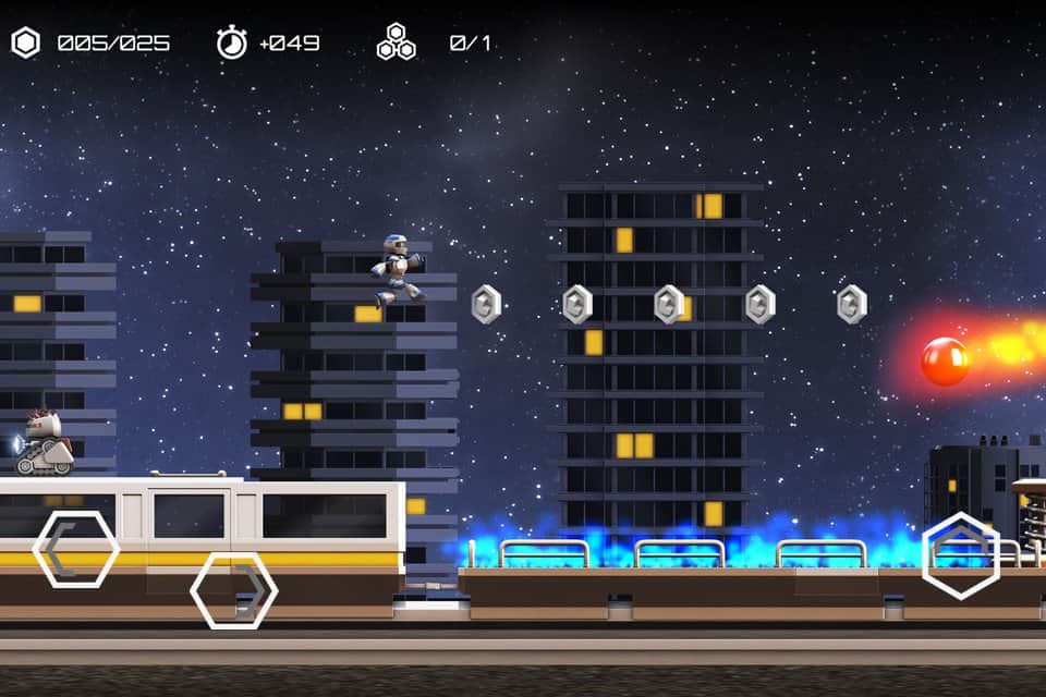 Atom Run - Приключенческая игра на андроид, выполненная в платформерном ретро стиле. Вам предстоит играть одним роботом, которые бегает в интересном механическом мире. Вы будите прыгать, толкать, и бежать, избегая множество опасностей и препятствий. И не бойтесь умереть, ваши жизни бесконечны. Именно это дает игре динамичности.