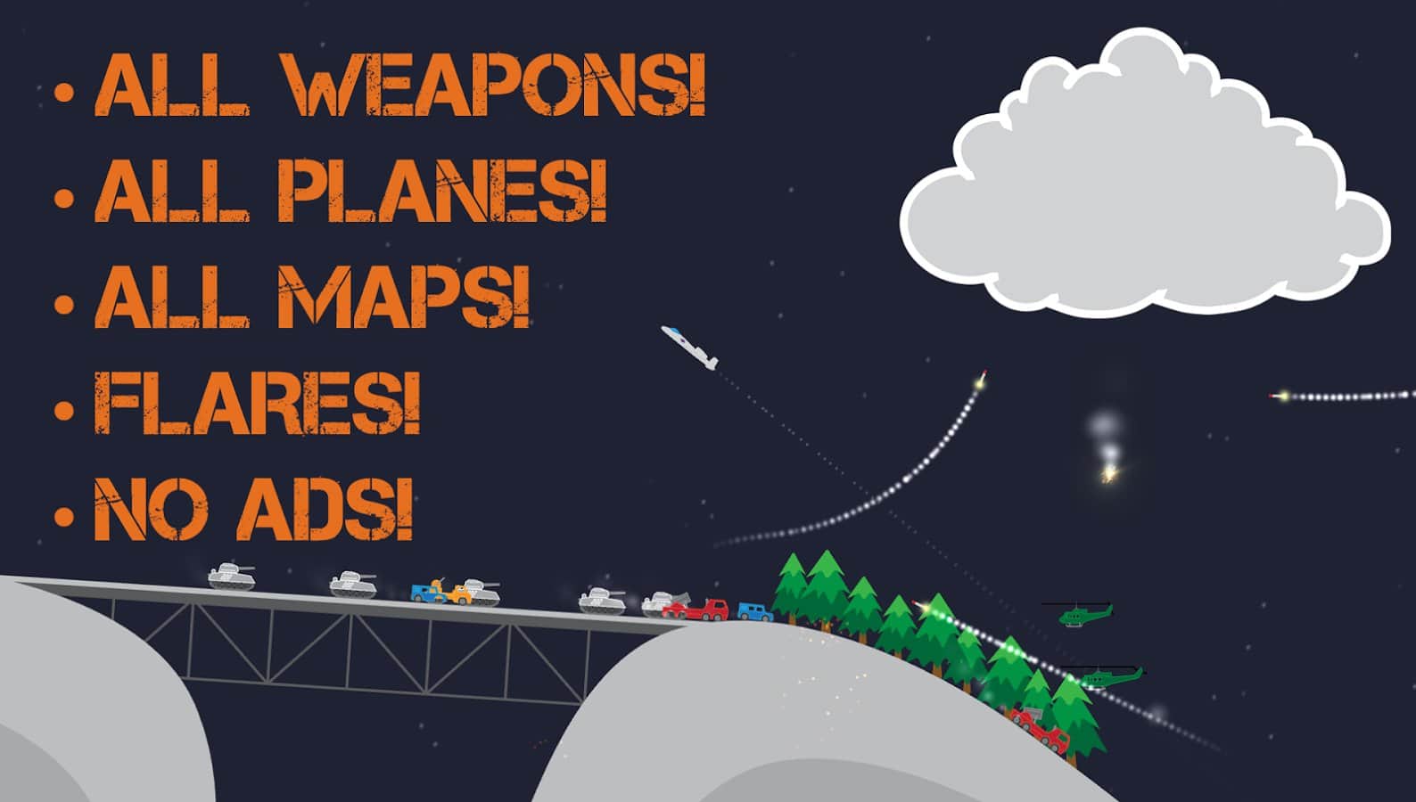 Atomic Bomber Fighter Pro - незамысловатая, но от того не менее увлекательная экшен аркада на военную тематику. В данной игре сюжетная линия полностью отсутствует, известно лишь то что вы пилот боевого самолета принимающего участие в неком локальном конфликте, но с учетом геймплея сюжет в Atomic Bomber Fighter Pro не особо и нужен, ведь основной акцент сделан именно на игровой процесс. И так, как уже говорилось вы пилот боевого самолета, причем в вашем распоряжении будет целый ряд техники, летая по внушительному игровому миру ваша задача уничтожать всех врагов которых вы встретите на пути. Реалистичная физика, приятная графика, отлично проработанная анимация, все это позволит вам приятно провести свободное время.