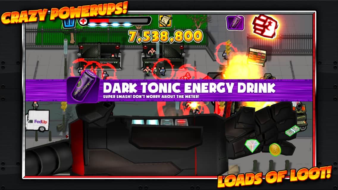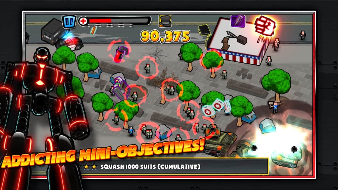 Attack of the Wall St. Titan - увлекательная аркада для андроид, в которой главный герой - гигантский робот. Именно он является разрушительной силой, которая громит все вокруг. Им вы и будете управлять. Для этого у вас арсенал оружия. Ракеты, взрывы и море разрушений - отличная физика и спецэффекты, пусть и в режиме просмотра сверху. Чем больше ущерба вы нанесете, тем выше ваши баллы! А еще - мини-игры, которые принесут дополнительное удовольствие, и бонусы!