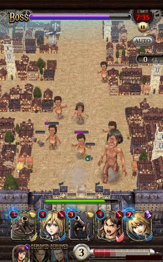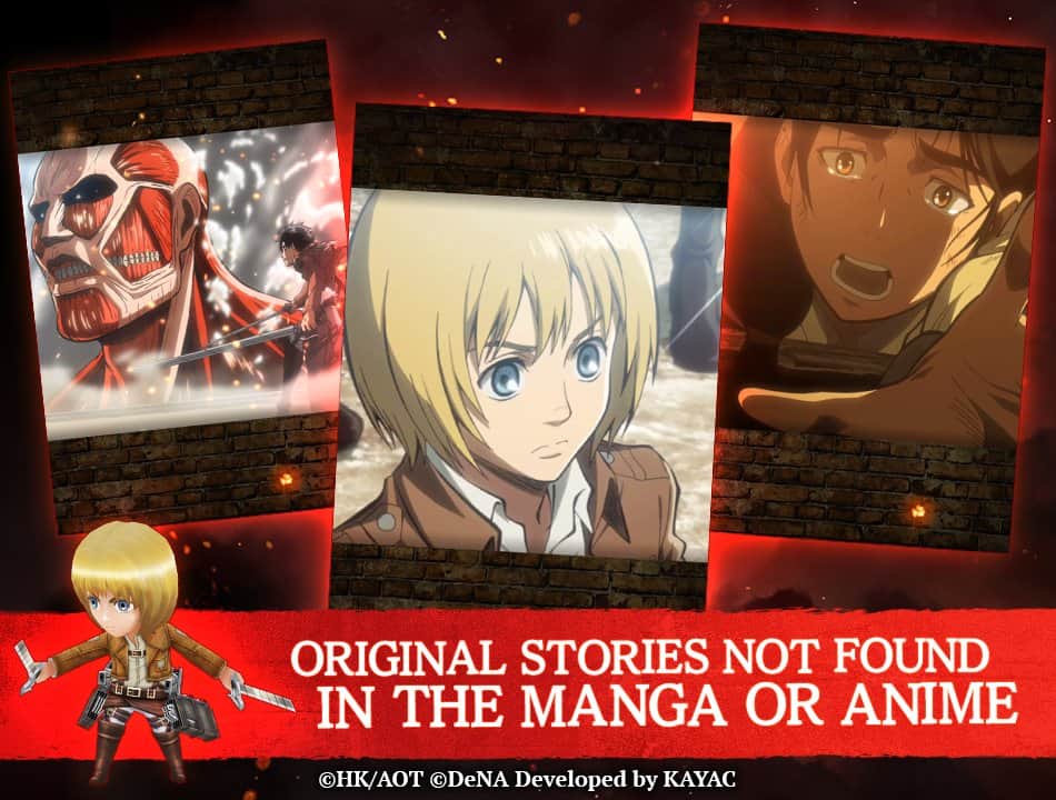 Attack on Titan TACTICS – увлекательная игра на андроид, созданная по сюжету одноименного аниме. В этой игре вы перенесетесь в мир где по мимо людей живут огромные титаны разрушающие и поедающие все на своем пути. Человечеству удалось выжить в это опасное время благодаря 50-метровым стенам защищающих мирных жителей от монстров. Десятилетний мальчик Эрен Йегер всю жизнь мечтает увидеть внешний мир, который расположен по ту сторону стен. Однако его односельчане перестали пытаться выйти за стену и наслаждаются тихой и спокойной жизнью. Все меняется, когда появляется колоссальный титан, угрожающий разрушить все стены. Эрен вступает в отряд, который защищает город от титанов. Применяйте свои уникальные навыки и способности и одолейте титанов.