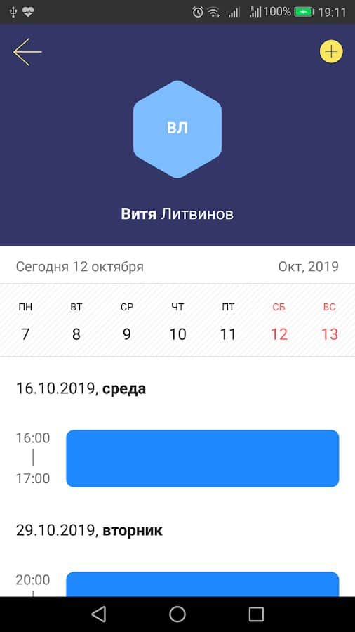- Просмотр расписания контактов;