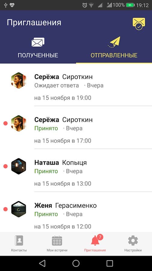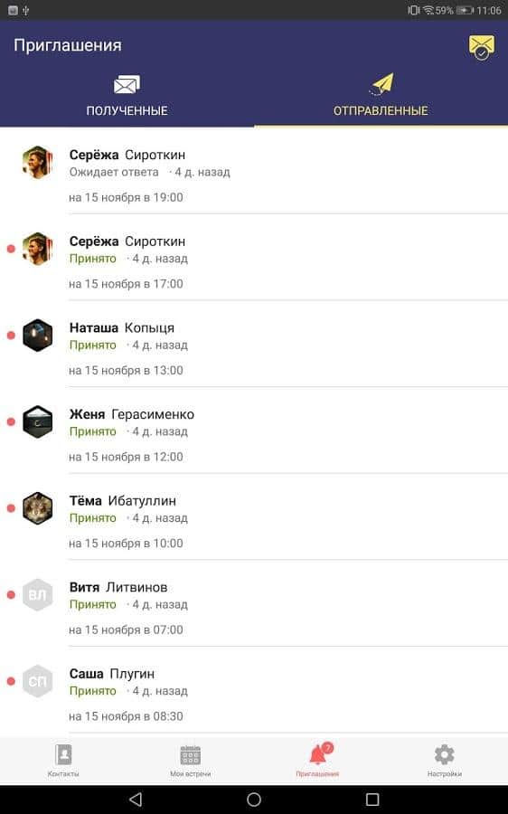 - Приглашение людей на встречи;